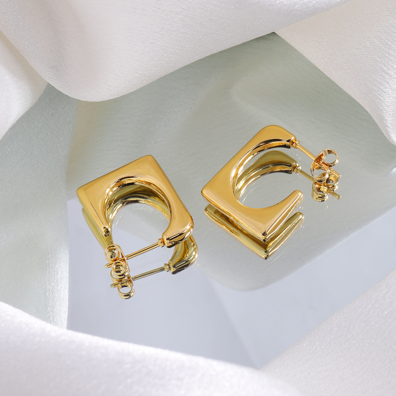 Color: Gold ring triangle earrings