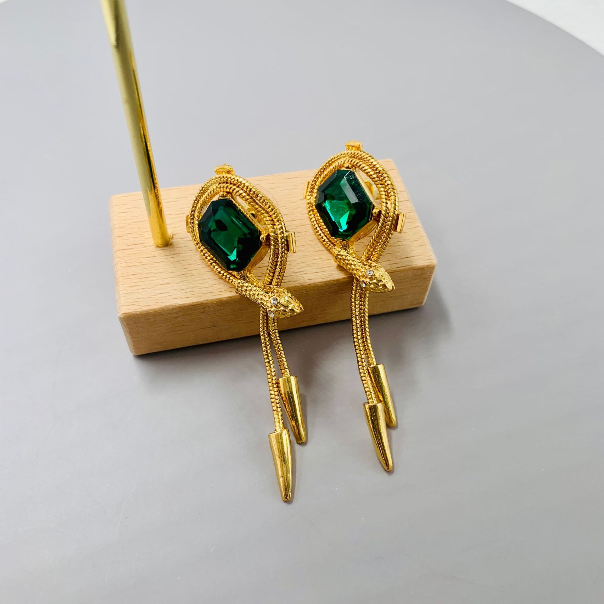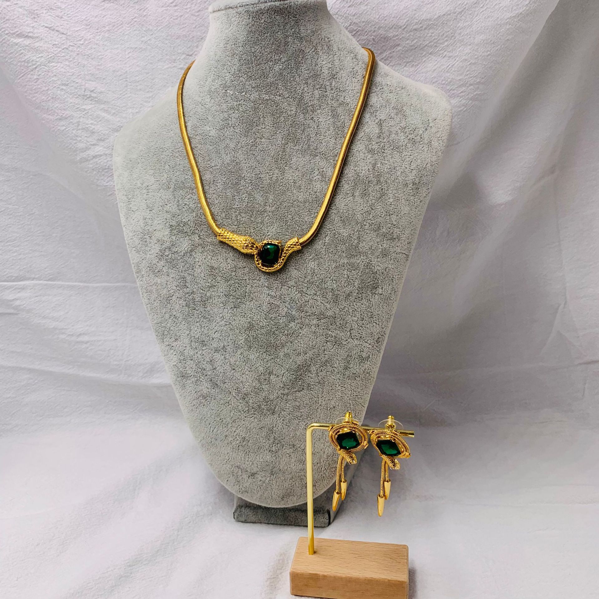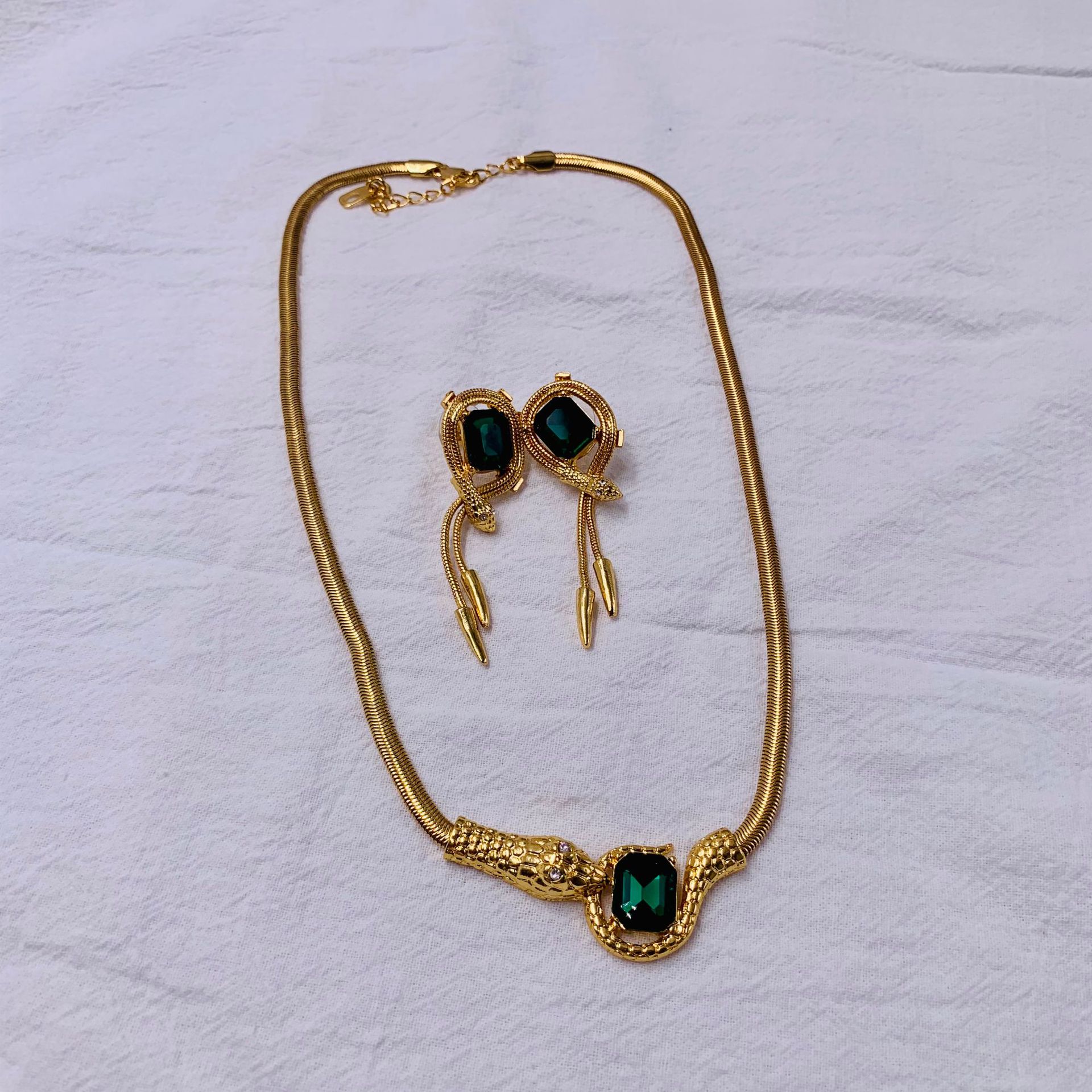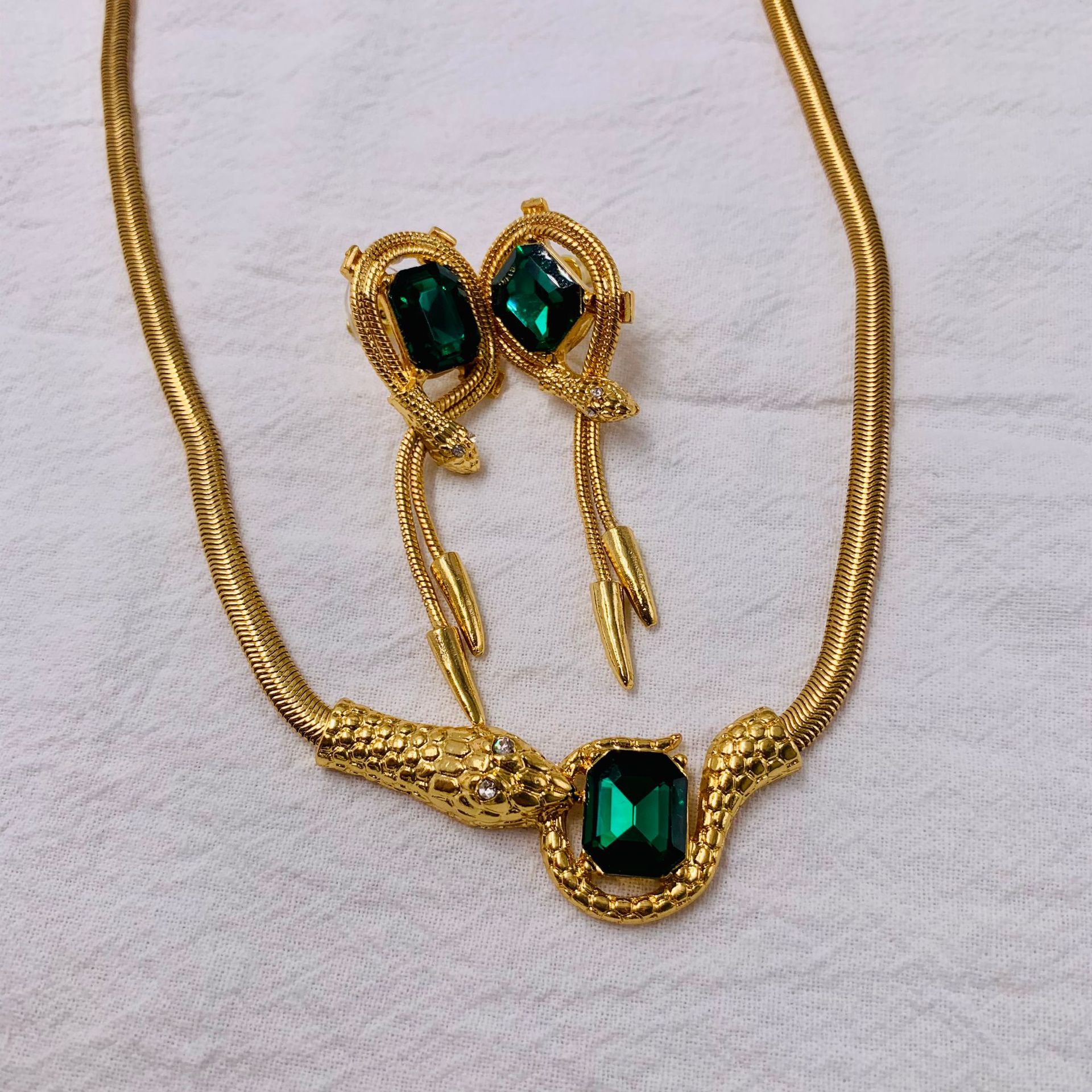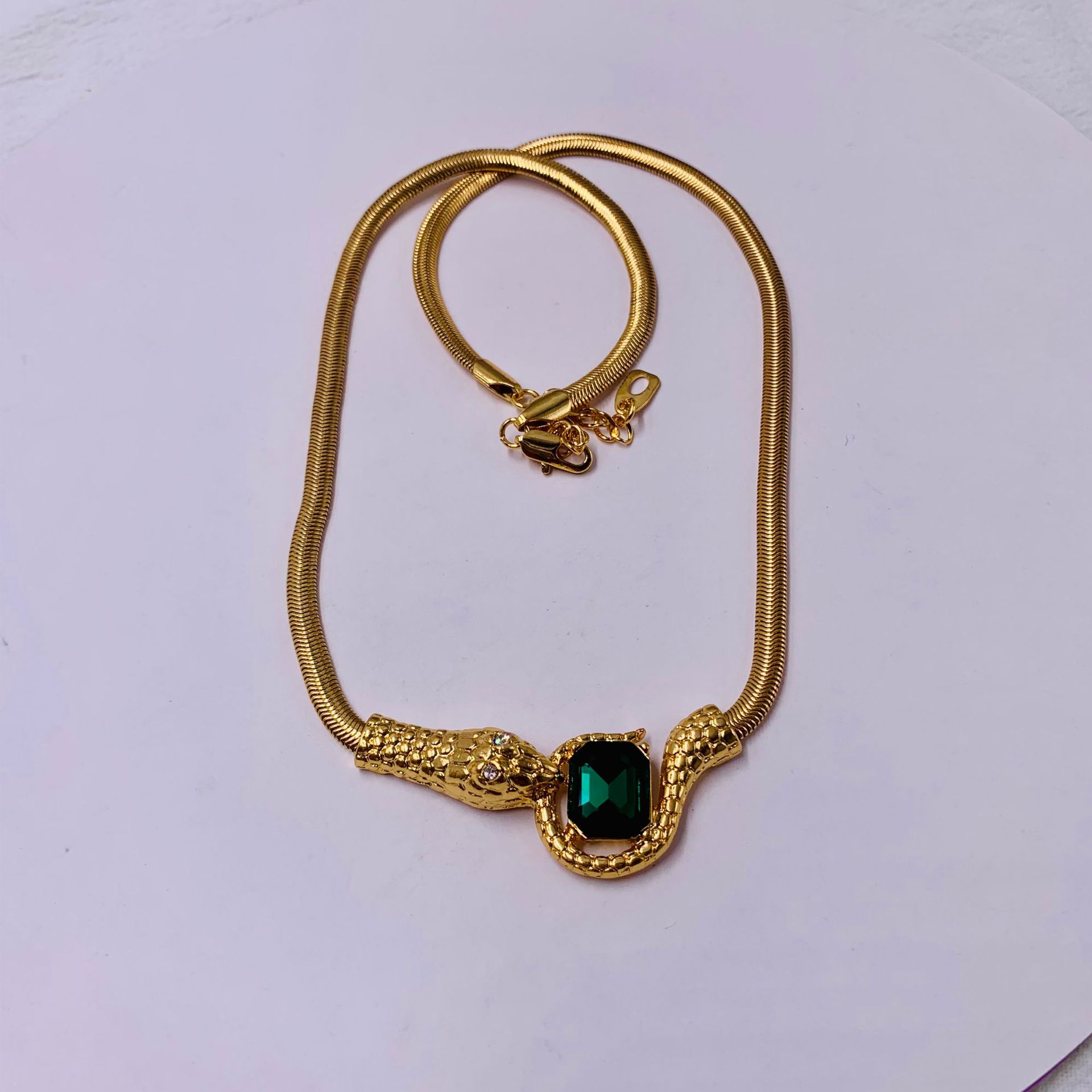 Mid-ancient vintage western retro electroplated real gold spirit snake smart emerald design necklace