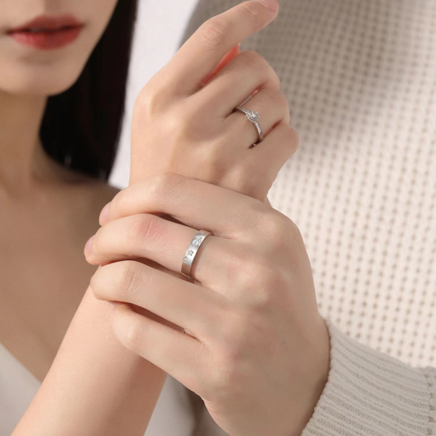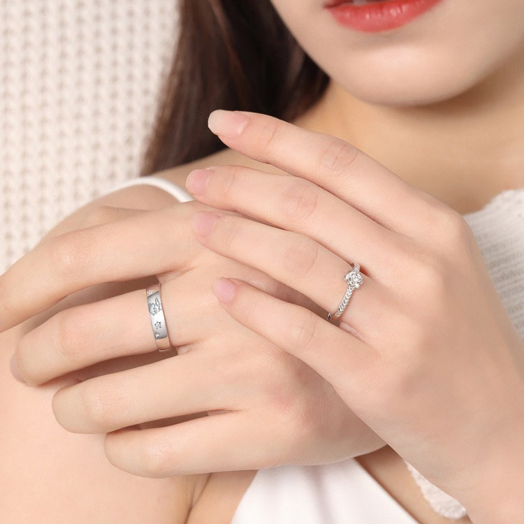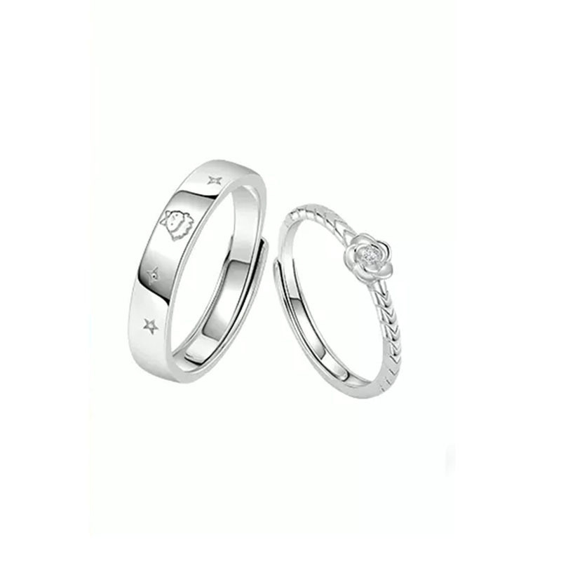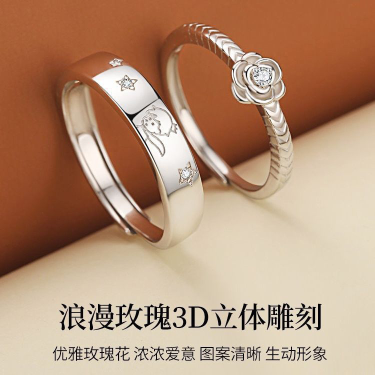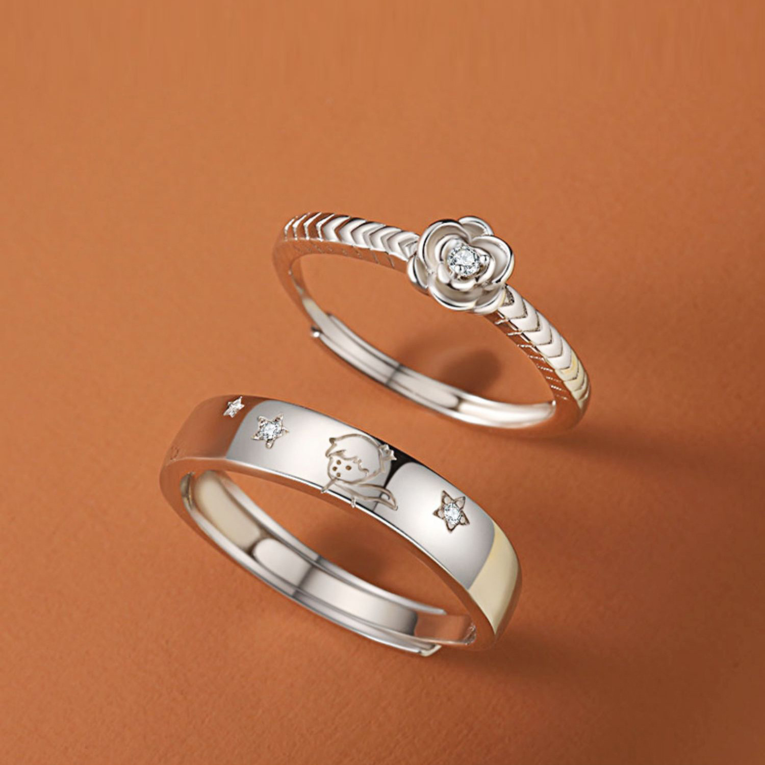 Little Prince and rose inlaid zircon couple ring Valentine's Day Design love token men and women ring