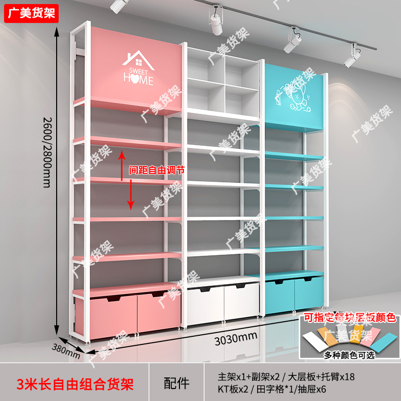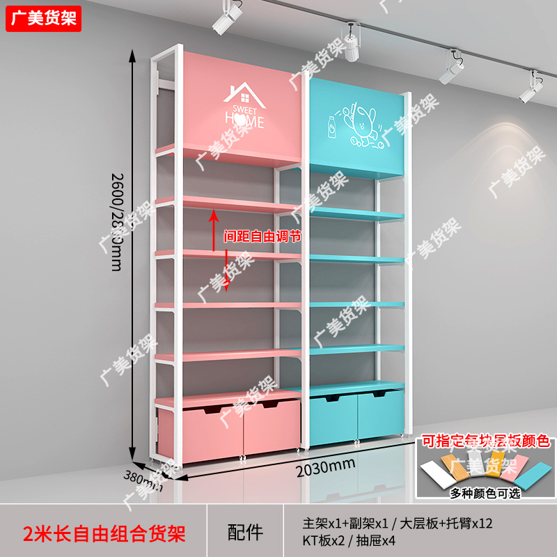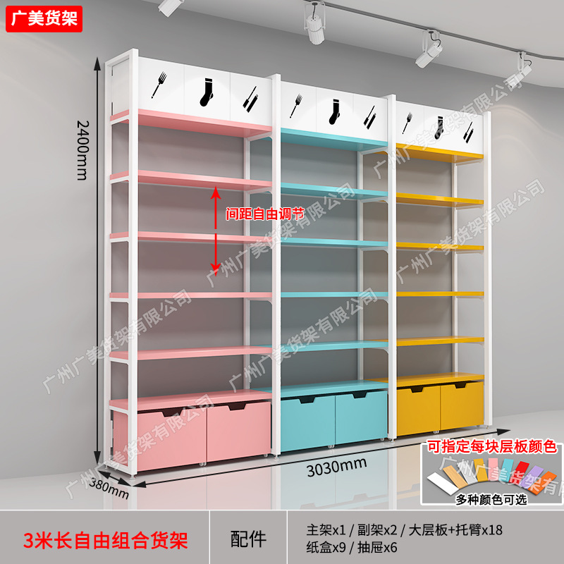 Function: Multifunctional free combination shelves, accessories can be configured on demand, multiple colors available, layer spacing can be adjusted freely