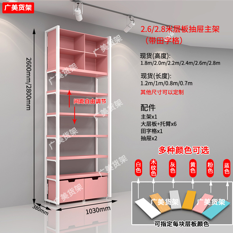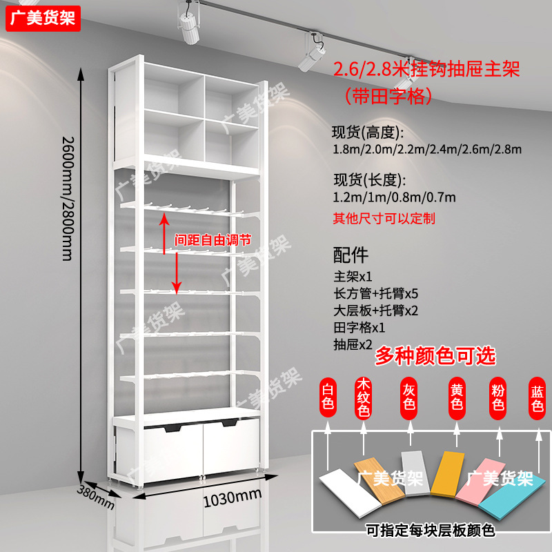 Specification model: 041:2.6/ 2.8m high hook drawer main rack + tianzi grids