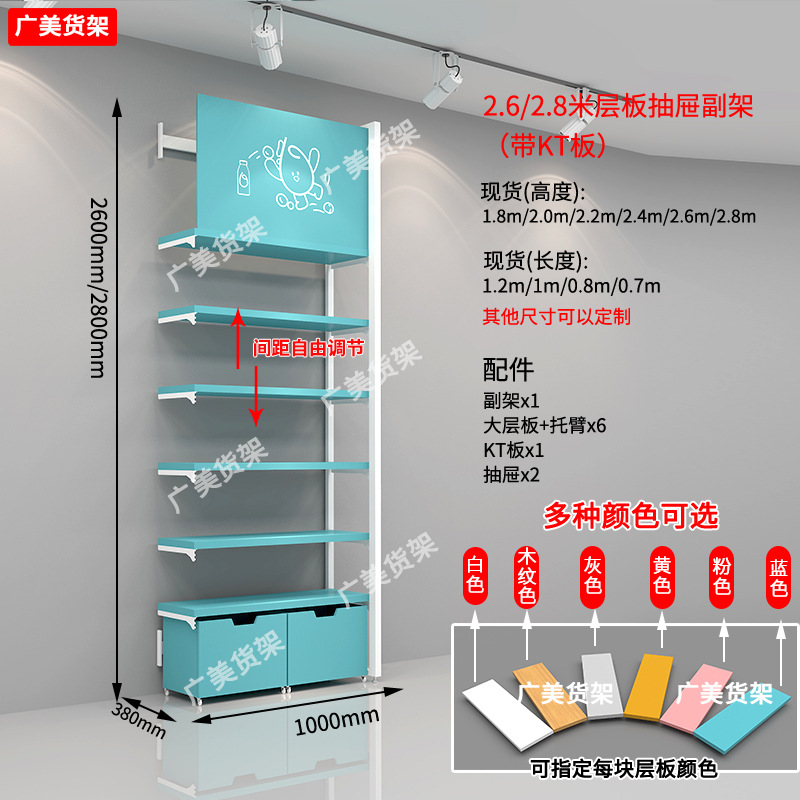 Specification model: 038:2.6/ 2.8m high hook drawer subframe + kt board advertising painting