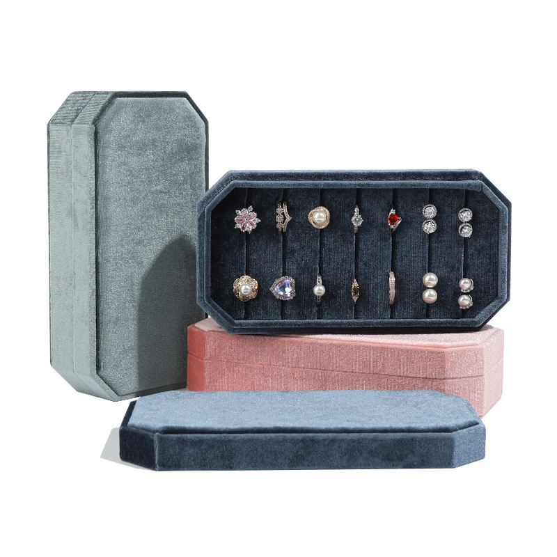 Velvet jewelry storage box ring earring box multi ring storage plate jewelry display earring storage box wholesale