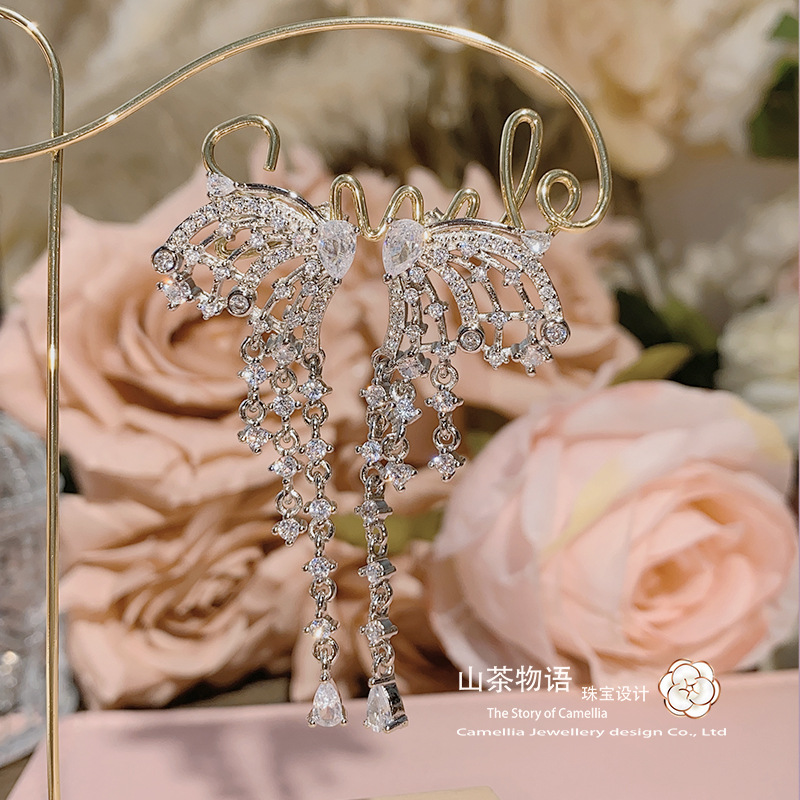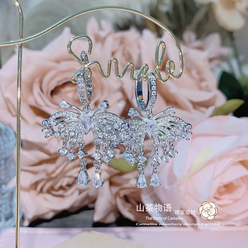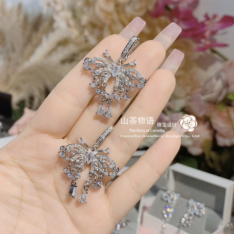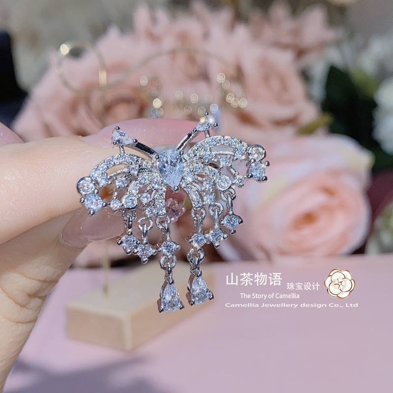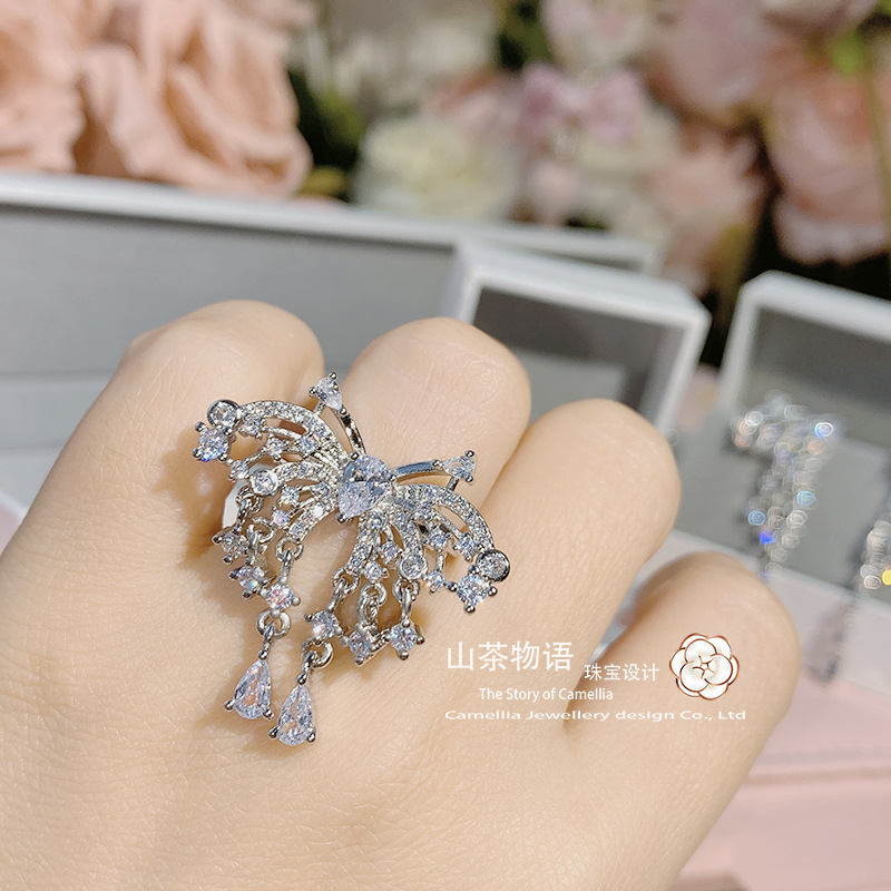 Camellia niche design Super fairy Hollow flashing butterfly suit micro-inlaid full diamond high-grade sense name Slow Ring