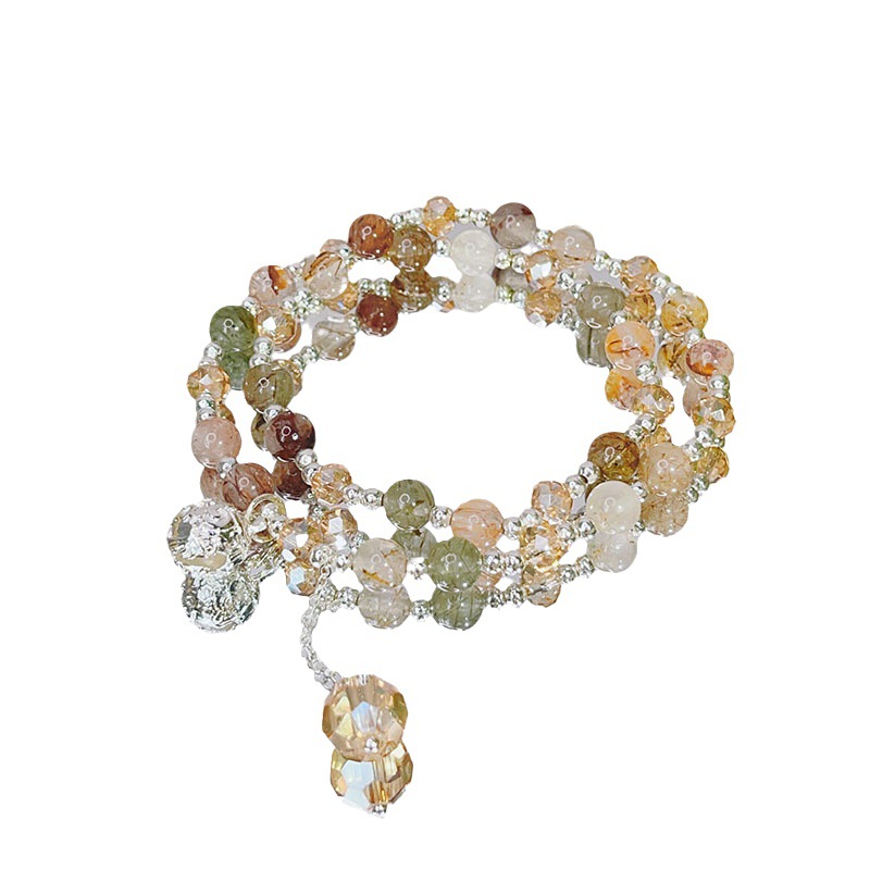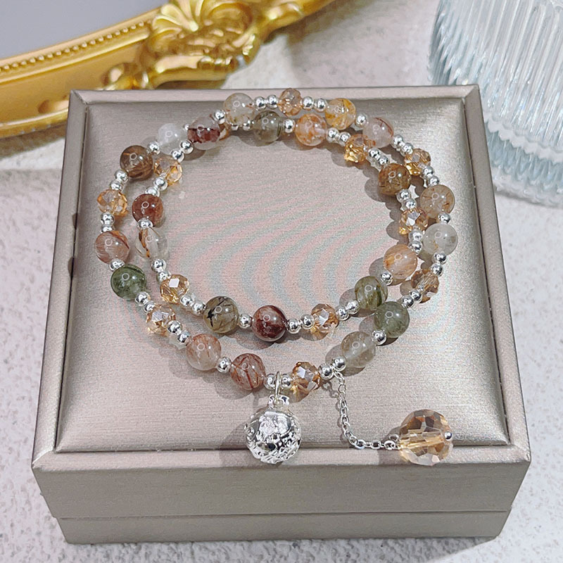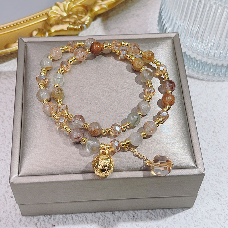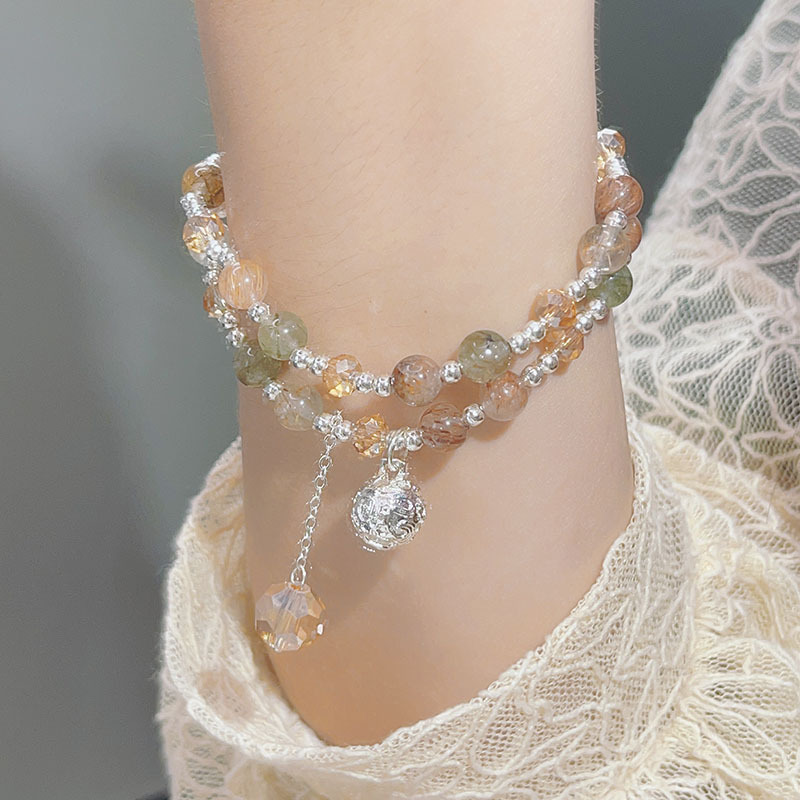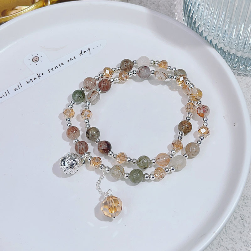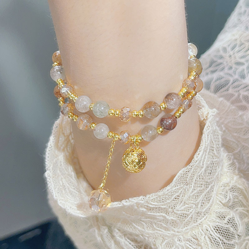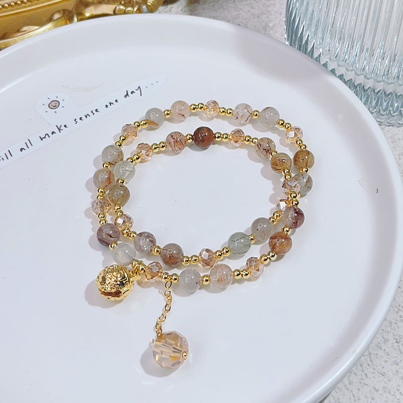 One step by one ~ double ring colorful hair Crystal Bell bracelet female light luxury High sense niche design beaded girlfriends bracelet