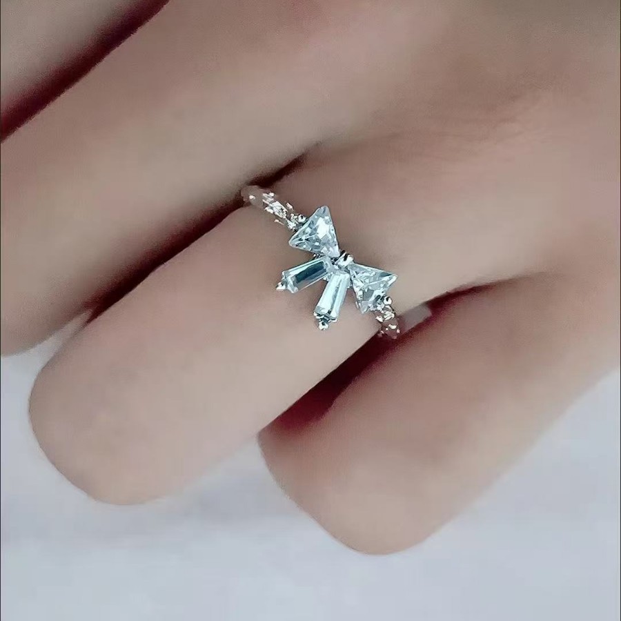 """"Time Princess"""""""" Girly Heart Versatile and Sweet Elegant Silver Bow Open Ring Adjustable Ring