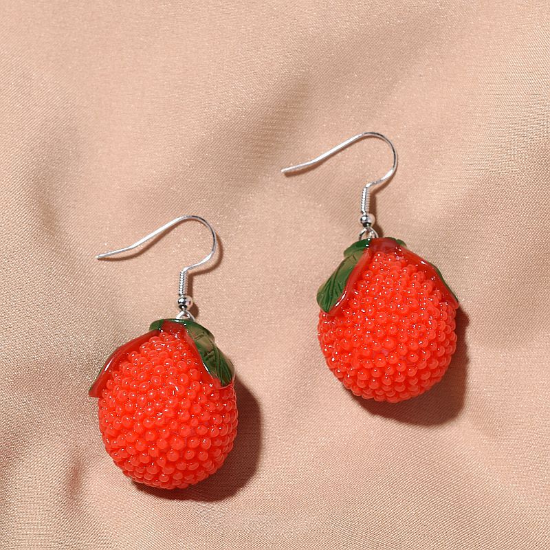 Summer Fresh cute simulation fruit three-dimensional waxberry Green Apple durian earrings South Korea elegant sweet earrings