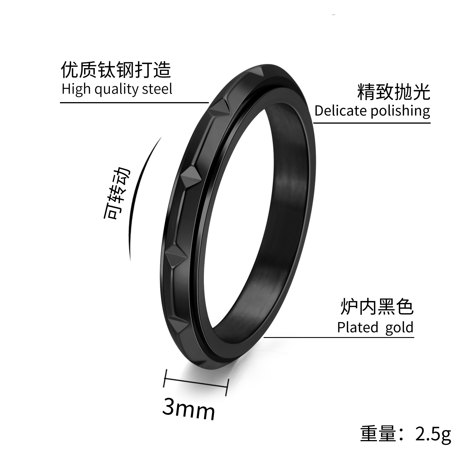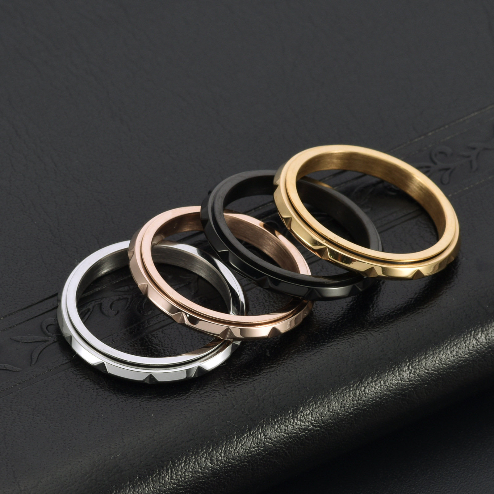 Ring: Amazon jewelry 3MM extremely fine rose gold bracelet titanium steel diamond angle bamboo joint rotating ring niche women's ring