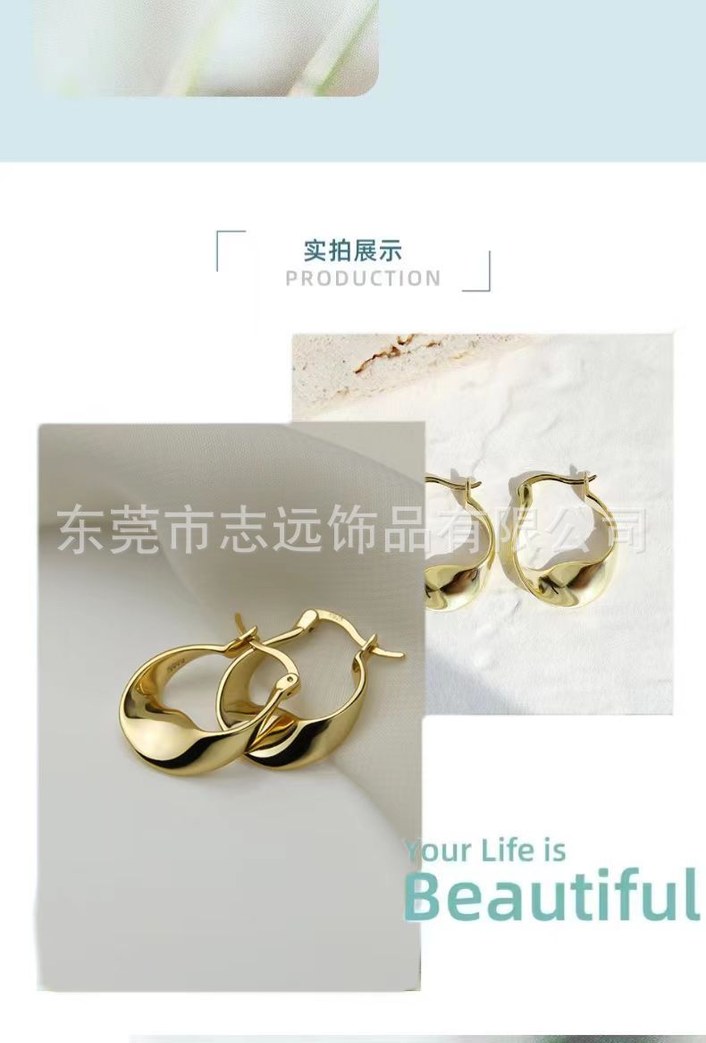 European and American glossy twisted earrings women's fashion personality 18K gold earrings trendy creative hollow ins cold style ear buckle