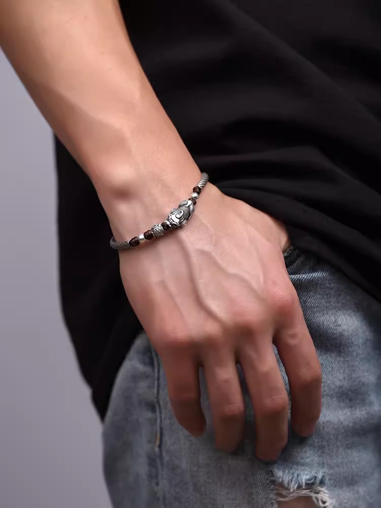 999 Sterling Silver Bracelet Men's trendy retro ethnic style woven new bracelet for boys in the year of birth