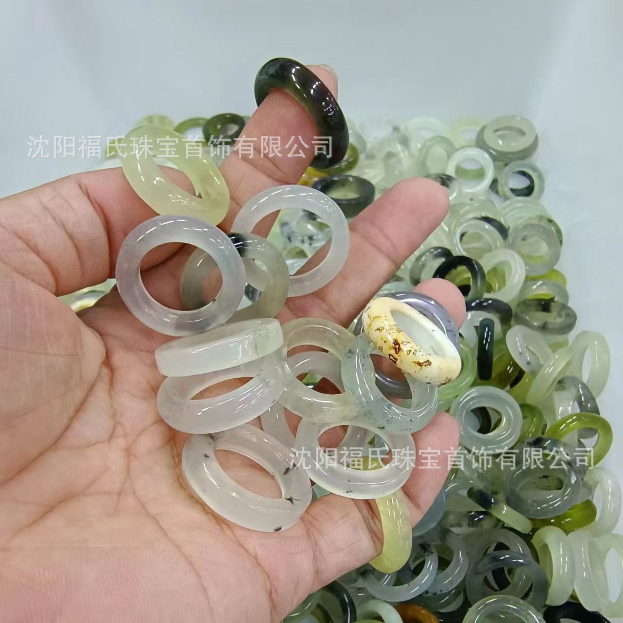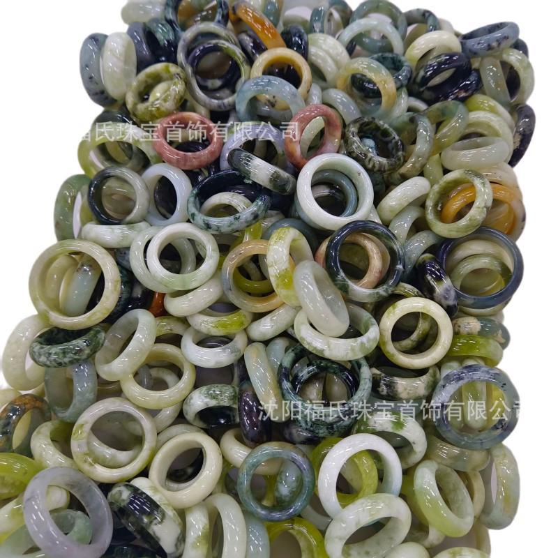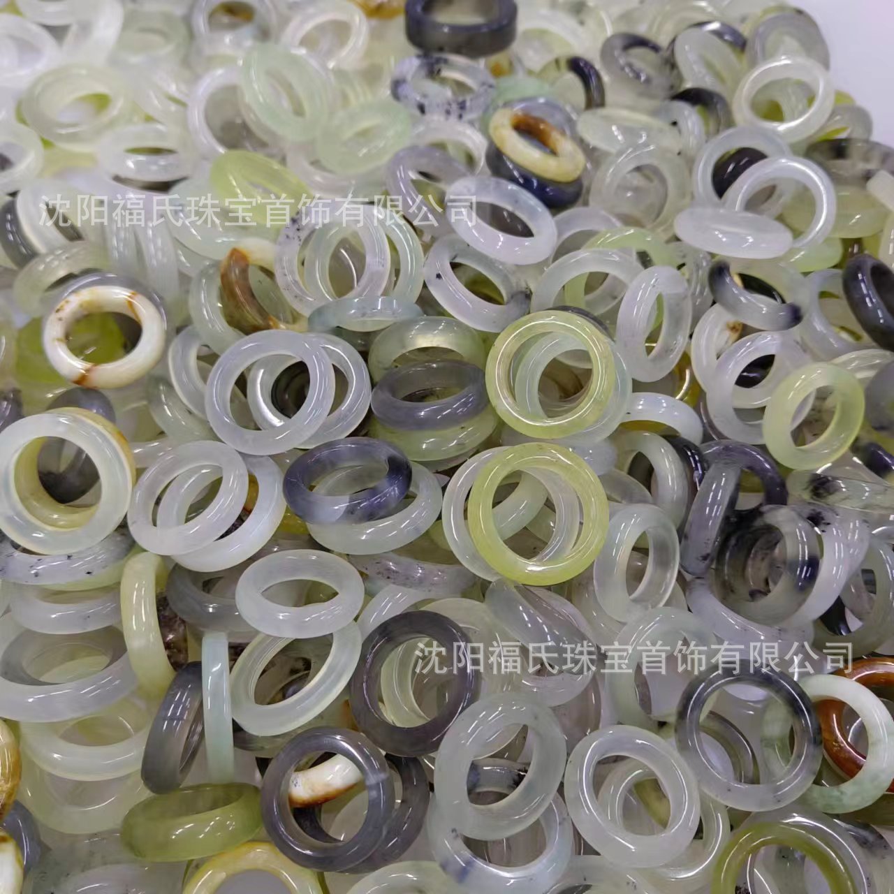 Natural Xiuyu ring wide version men's and women's ink green lifting white ice transparent caliber 14~22 mixed batch Jade wrench finger