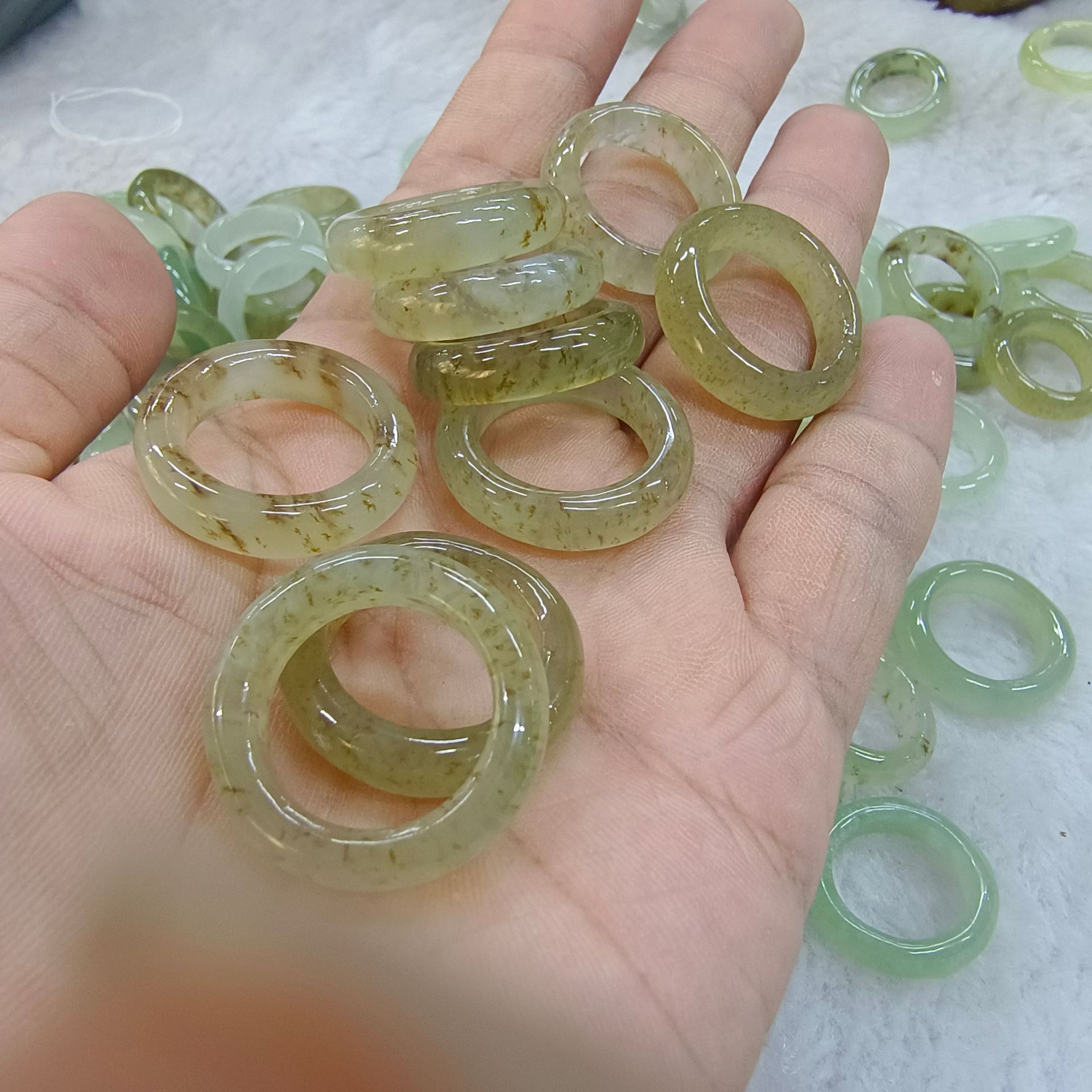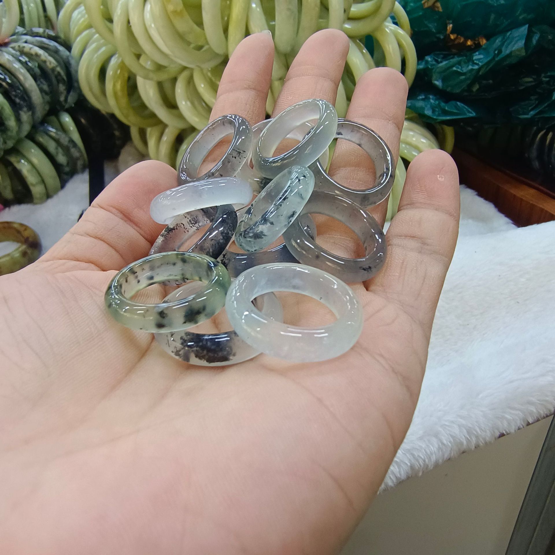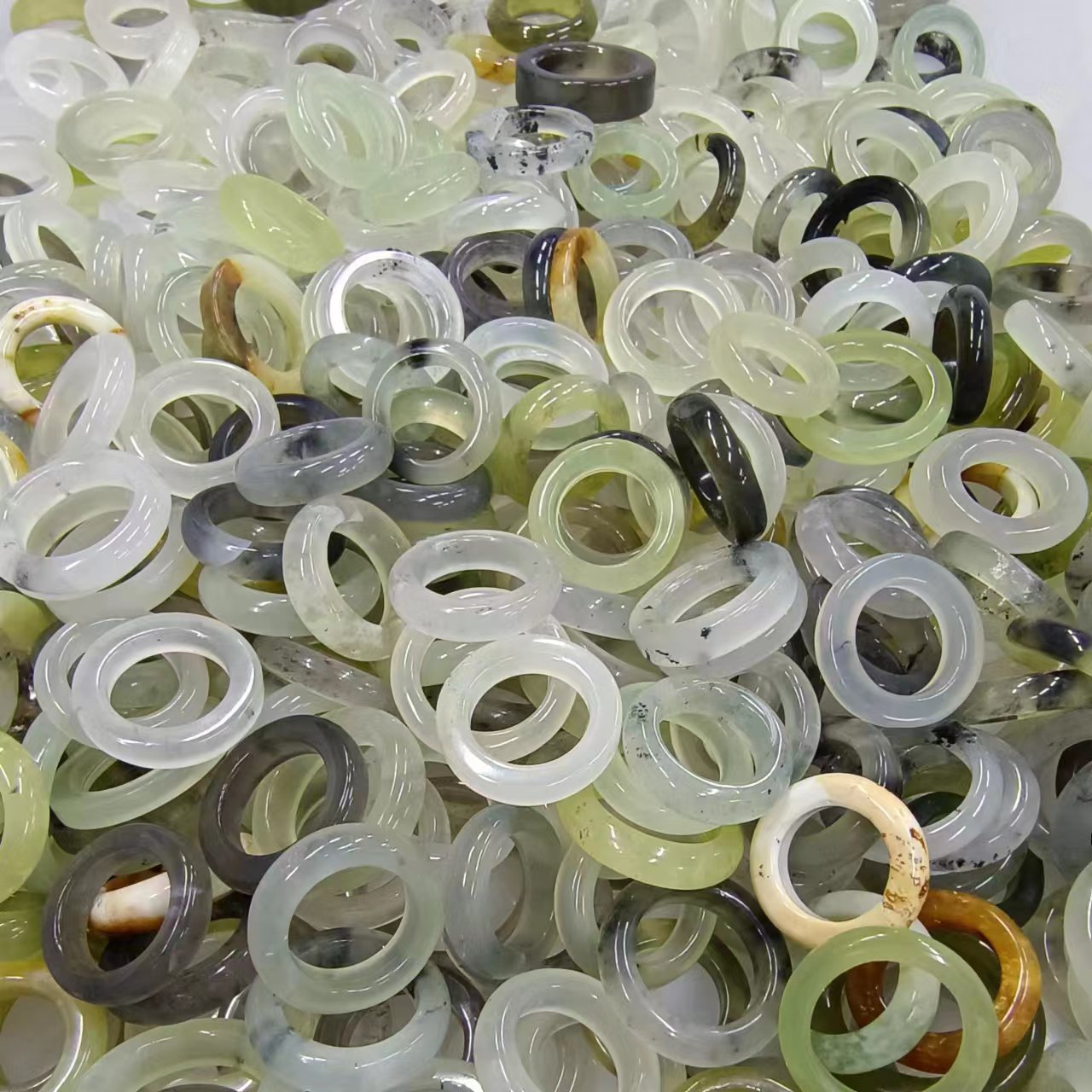 Natural Xiuyu ring wide version men's and women's ink green lifting white ice transparent caliber 14~22 mixed batch Jade wrench finger