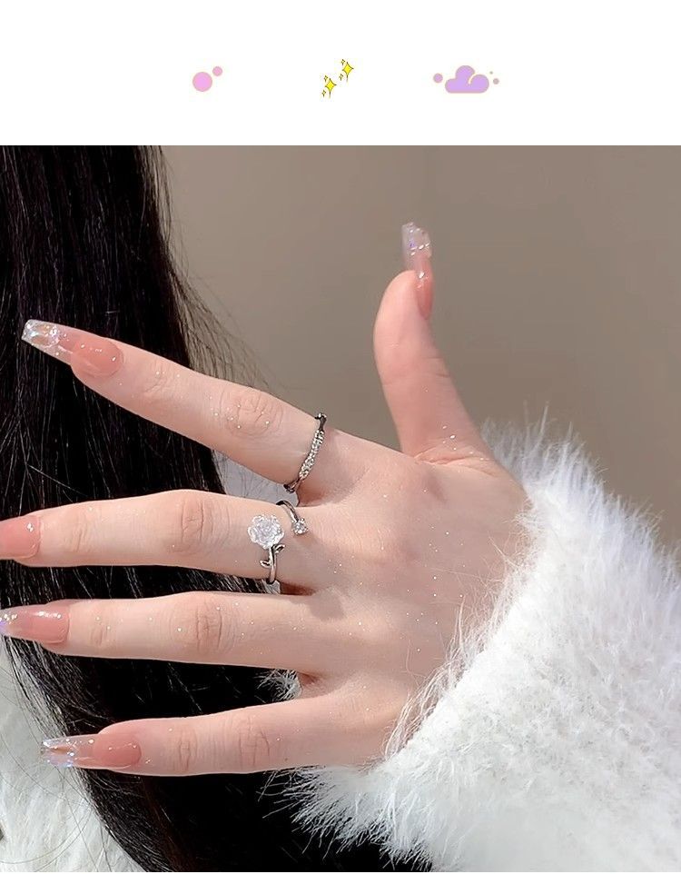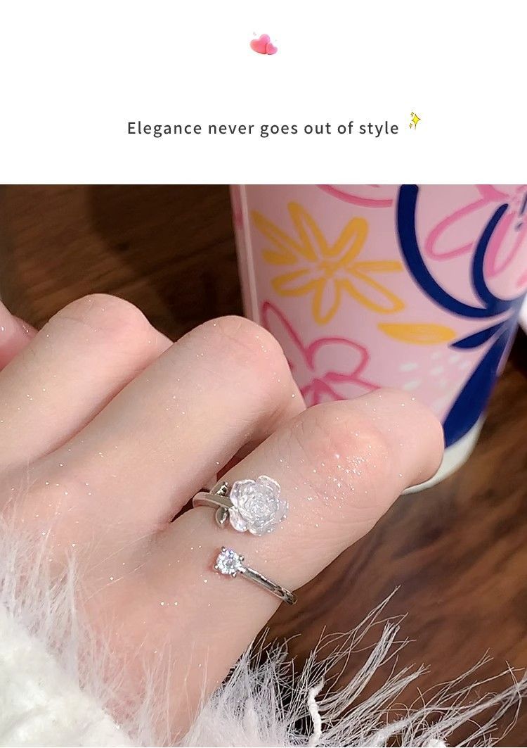 Korean style new crystal Camellia ring female ins niche design trendy plain ring light luxury tail ring index ring
