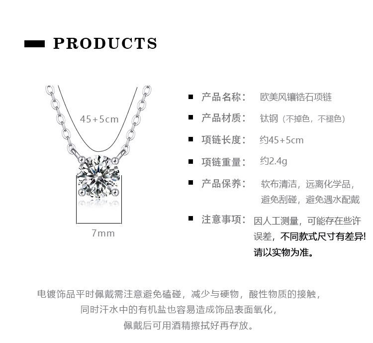 Zircon necklace explodes: Titanium steel necklace