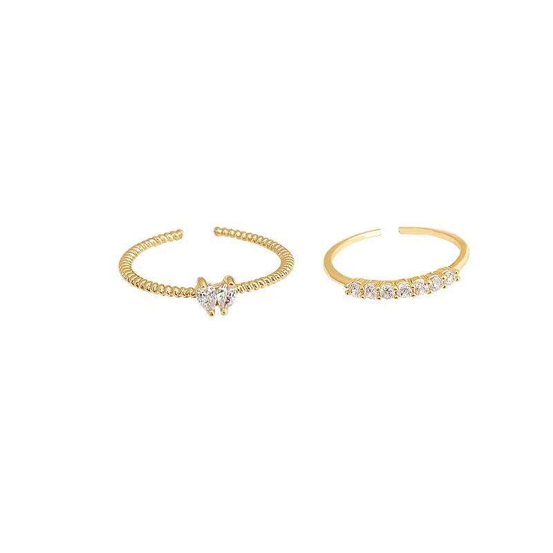 Exquisite Heart Two-Piece Ring for Women Korean Fashion Versatile Heart Zircon Index Finger Ring Accessible Luxury Niche Design