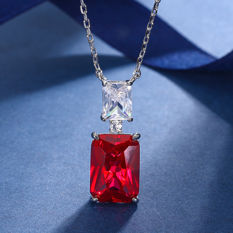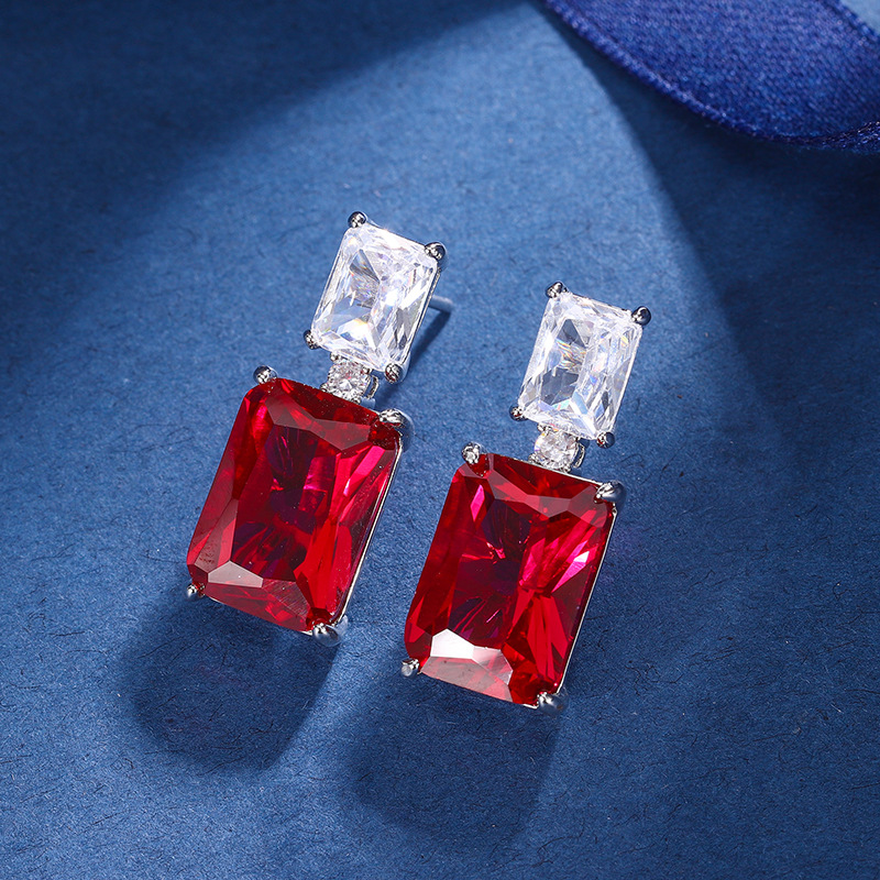 Zhuang Sheng jewelry copper bottom gold-plated simulation pigeon red blood corundum niche temperament suit pendant earrings 10*14