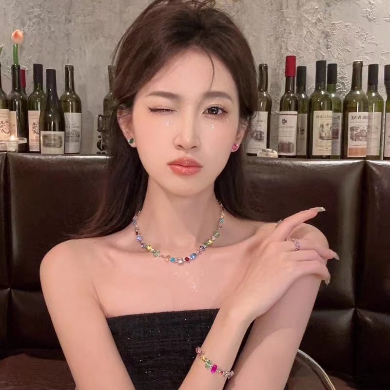 Sweet Candy colorful crystal Zircon necklace light luxury high-grade Love Rainbow clavicle chain female ins niche fashion