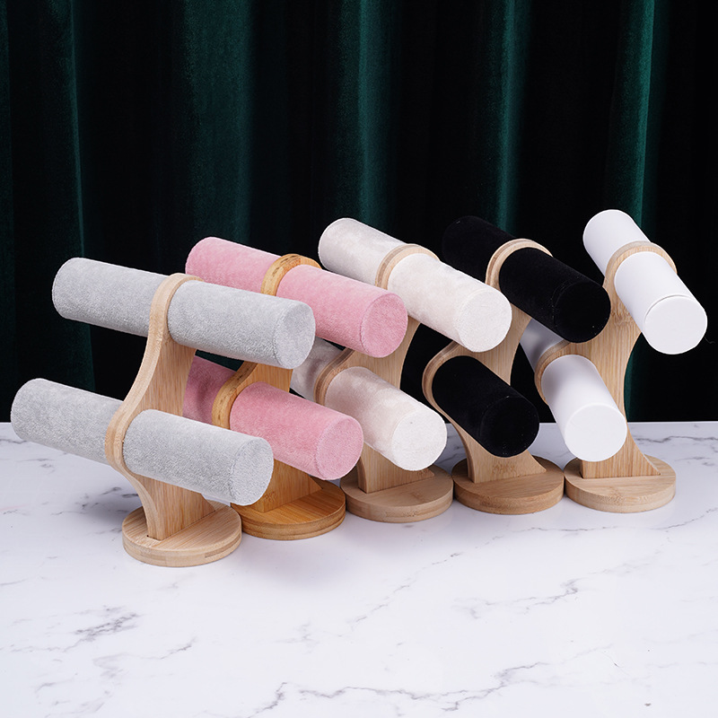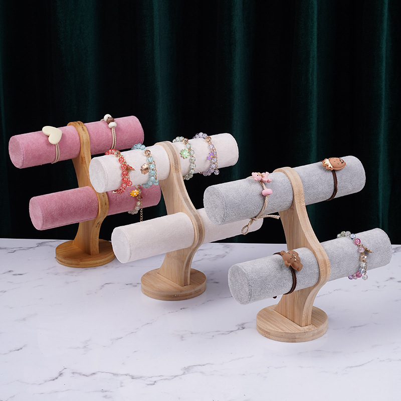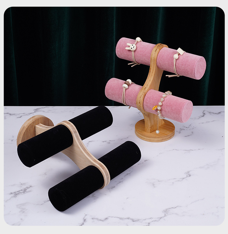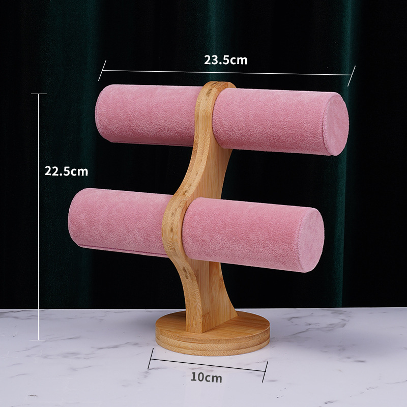 Bamboo-wood powder velvet double-layer bracelet rack