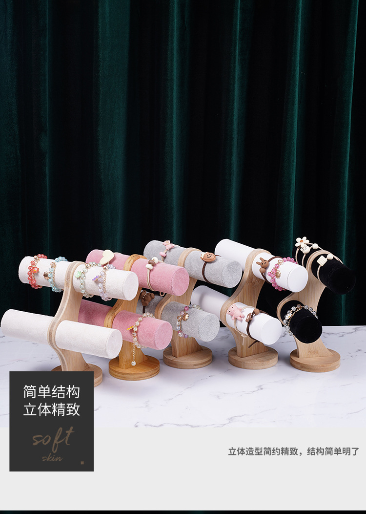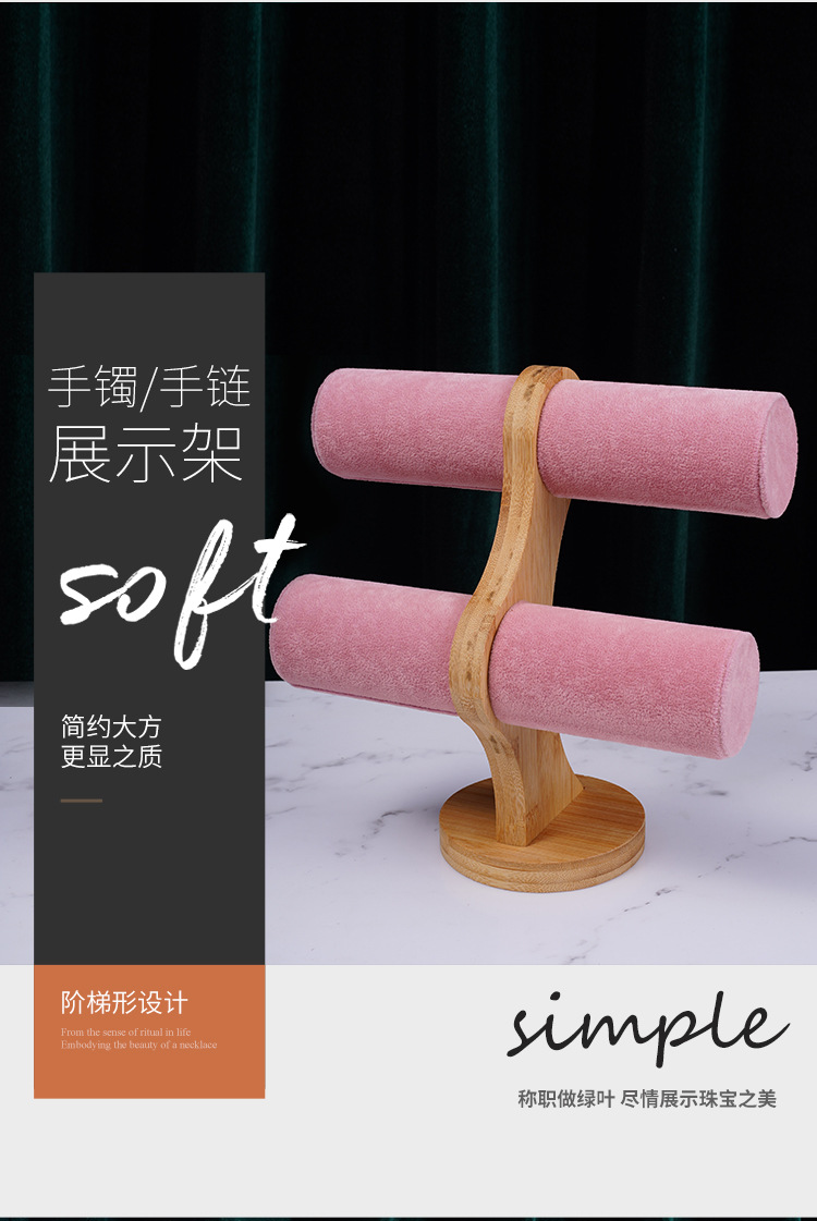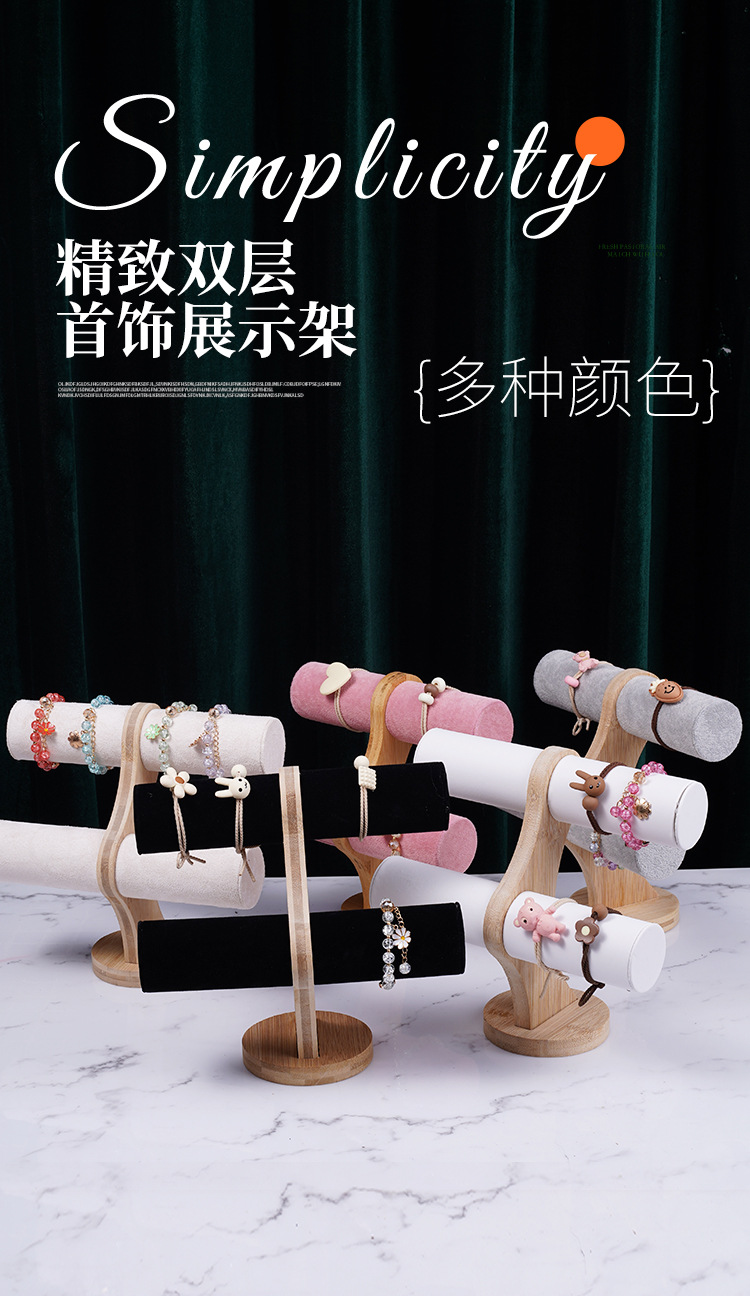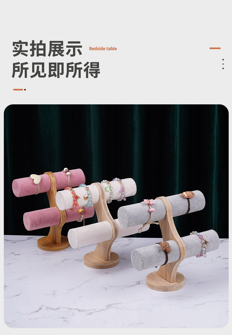 Color: Bamboo-wood powder velvet double-layer bracelet rack