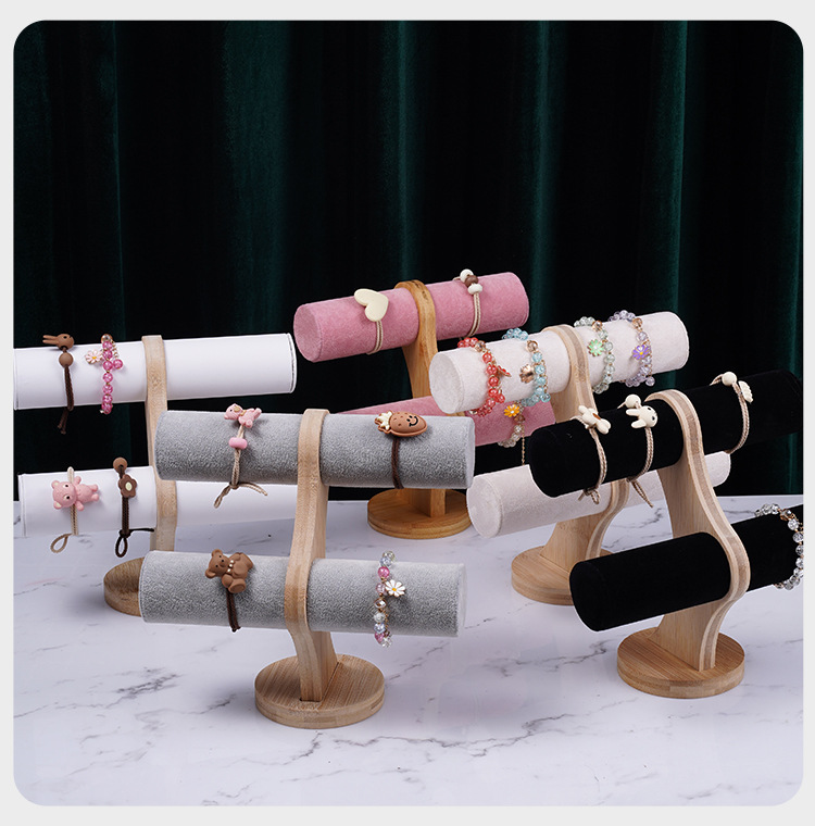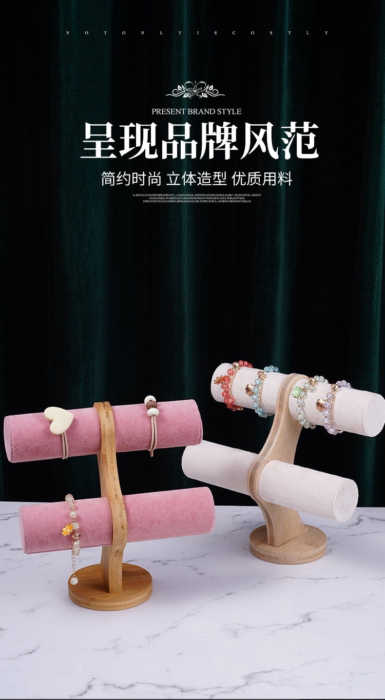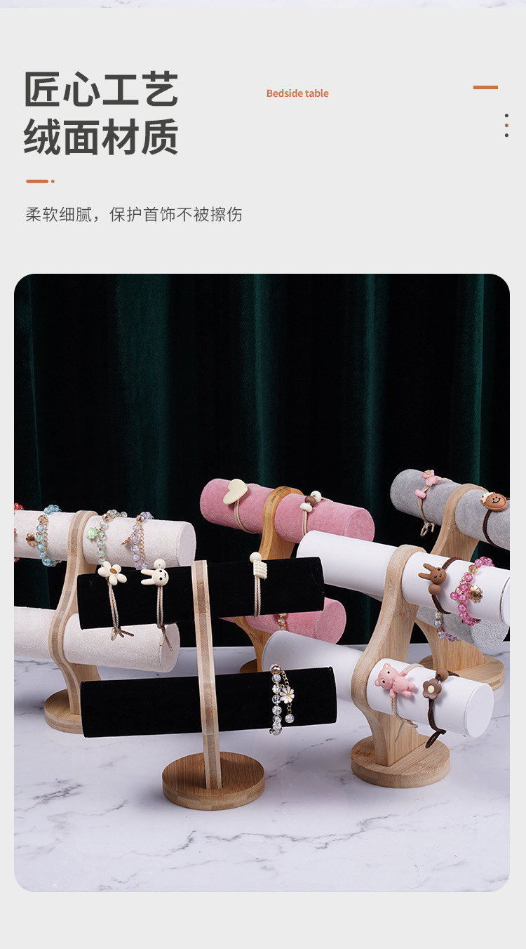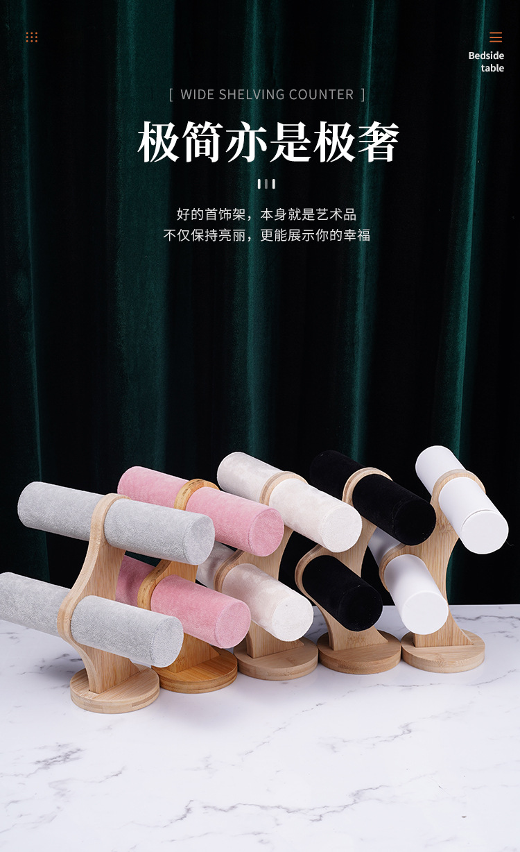 Color: Bamboo-wood powder velvet double-layer bracelet rack