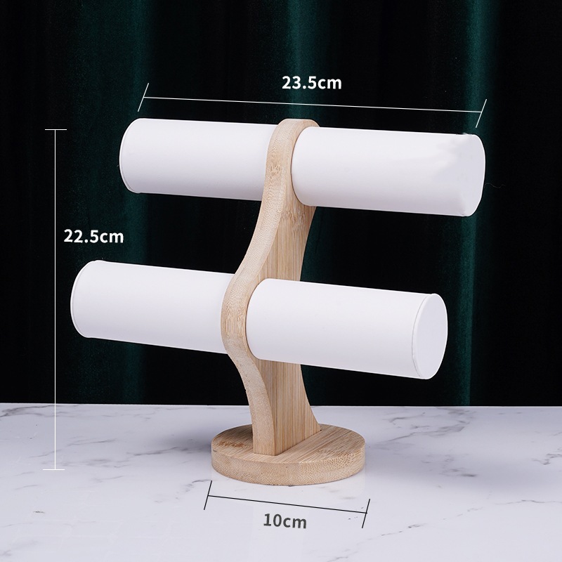 Color: Bamboo-Wood White Leather Double-Layer Bracelet Rack