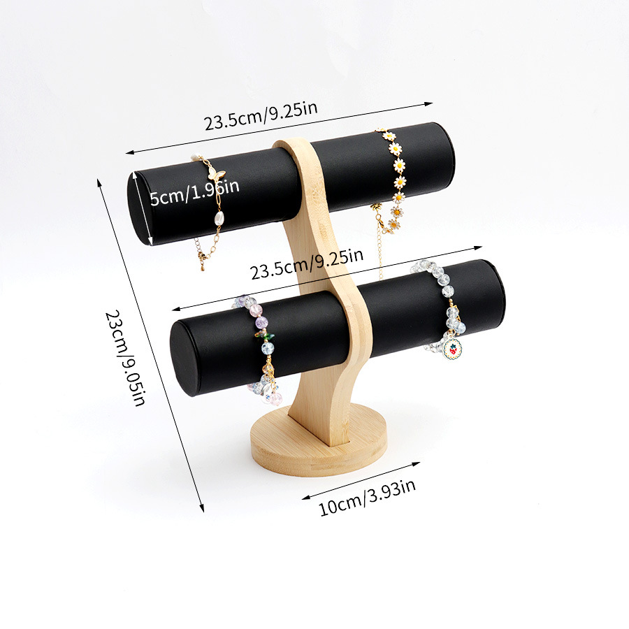 Color: Bamboo and Wood Black Leather Double-Layer Bracelet Rack