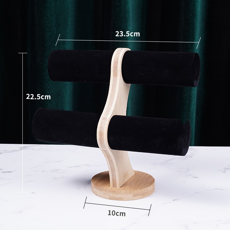 Bamboo-wood black velvet double-layer bracelet rack