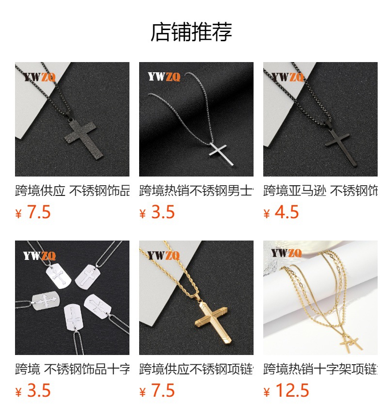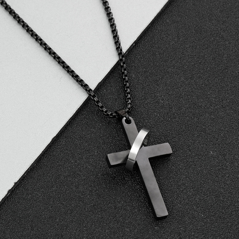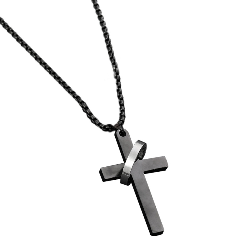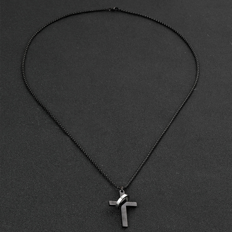 Cross-border new stainless steel jewelry cross double ring necklace personality hip hop men's titanium steel pendant jewelry manufacturer