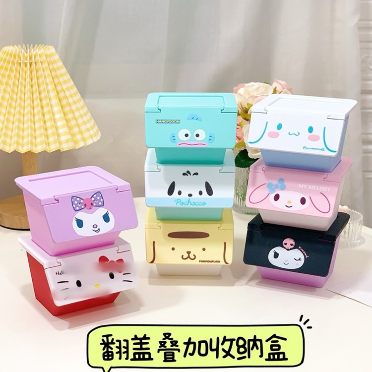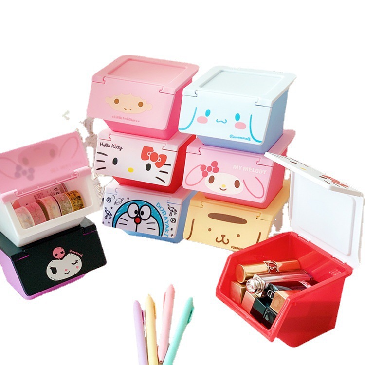 新款可爱少女心ins风桌面收纳盒 可叠加层翻盖杂物盒卡通置物盒整理盒【总图18个图案】
