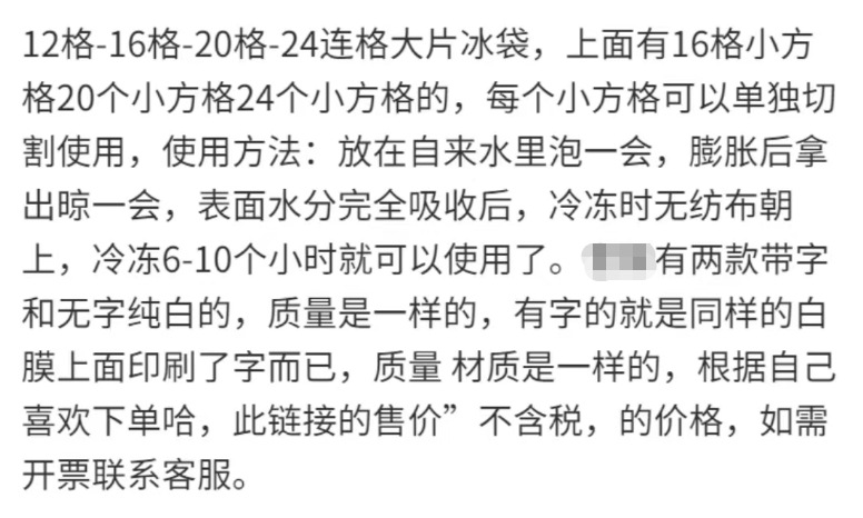 Specifications: 24-piece grid without words [28 * 39cm] self-priming ice bag