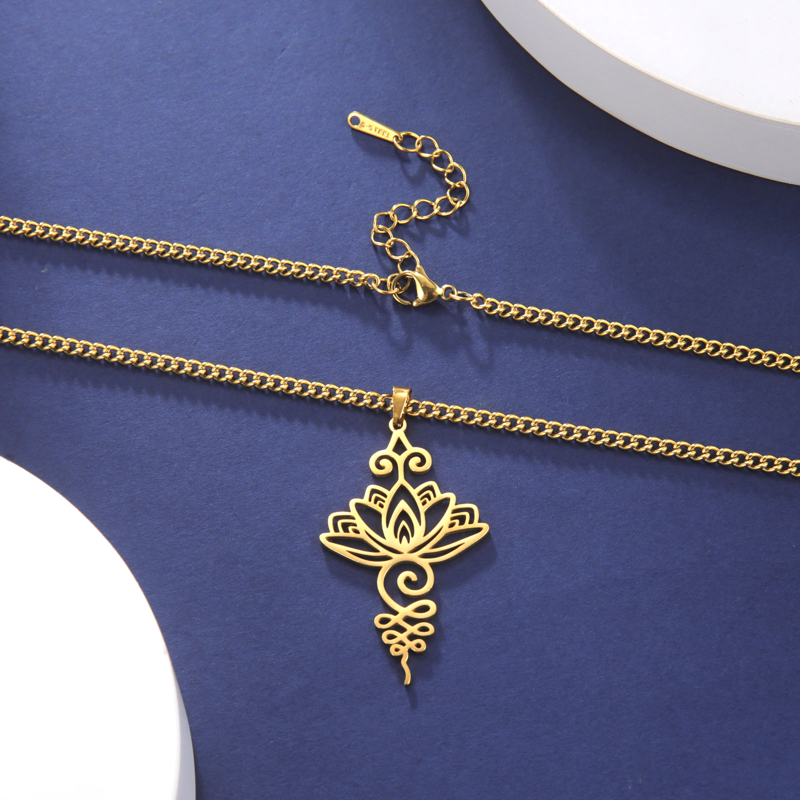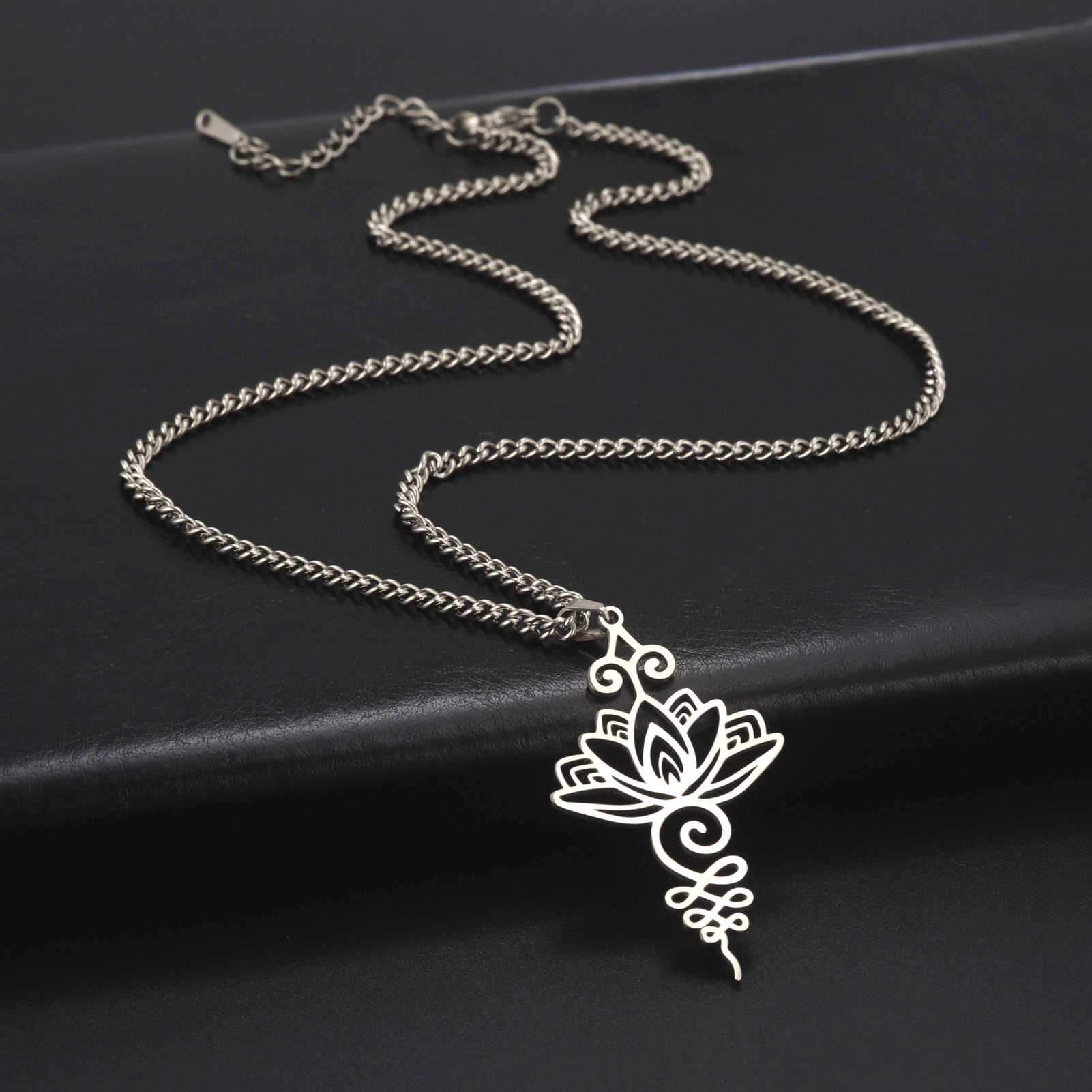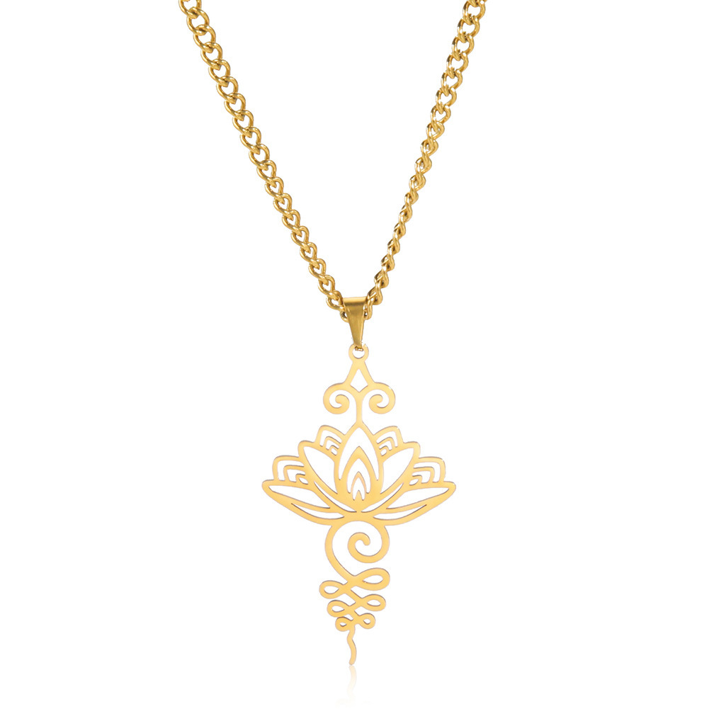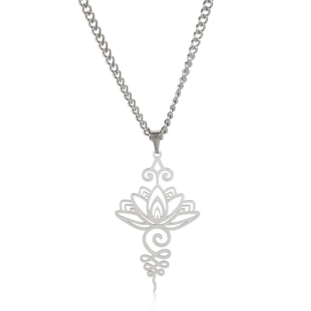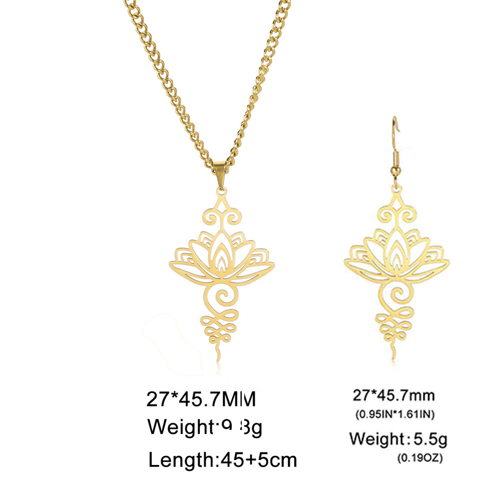 Cross-border titanium steel lotus ethnic style Han element meditation relaxation calm personality pendant necklace titanium steel niche earrings