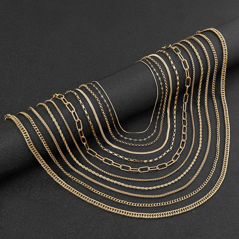 SOURCE Factory DIY titanium steel necklace female o-chain plated 18K real gold Non-fading snake bone chain Cuban chain plain chain male