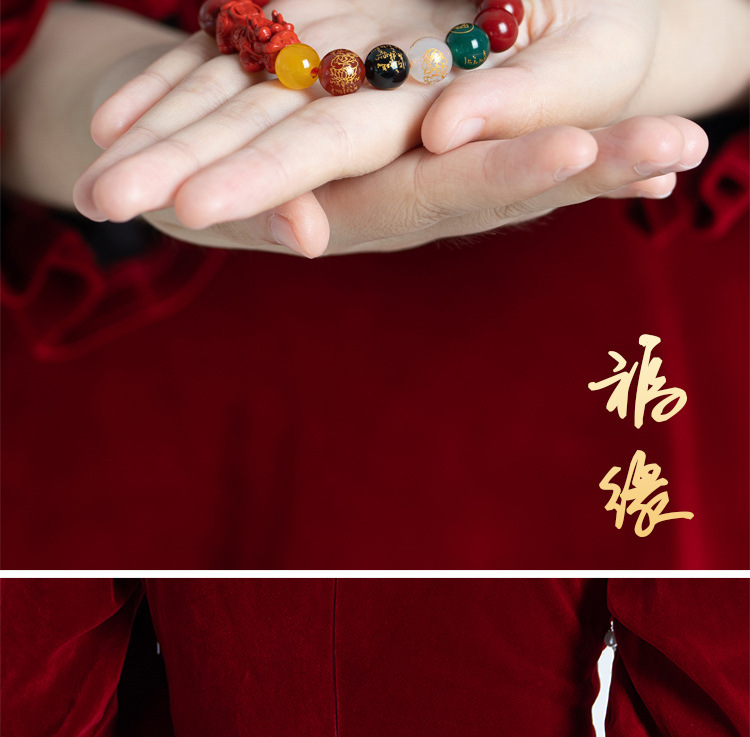 Color: Five-way God of Wealth Cinnabar Pixiu Purple Gold Sand Beads (Gift Box)