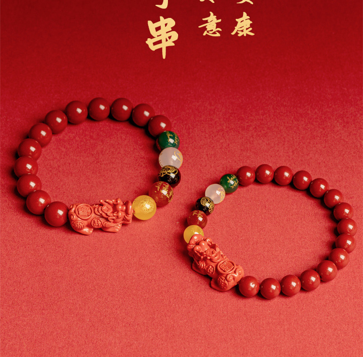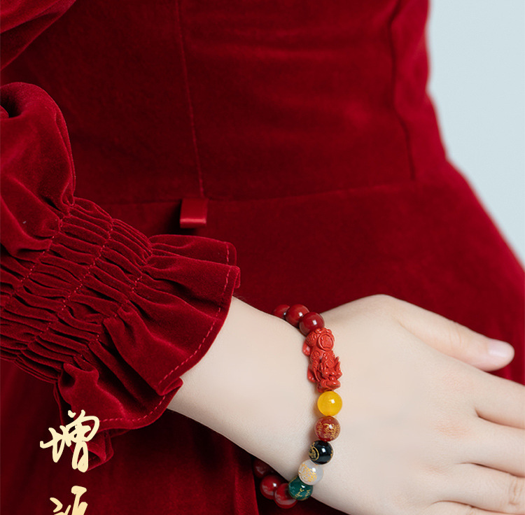 Color: Five-way God of Wealth Cinnabar Pixiu Purple Gold Sand Beads Tai Years Beads