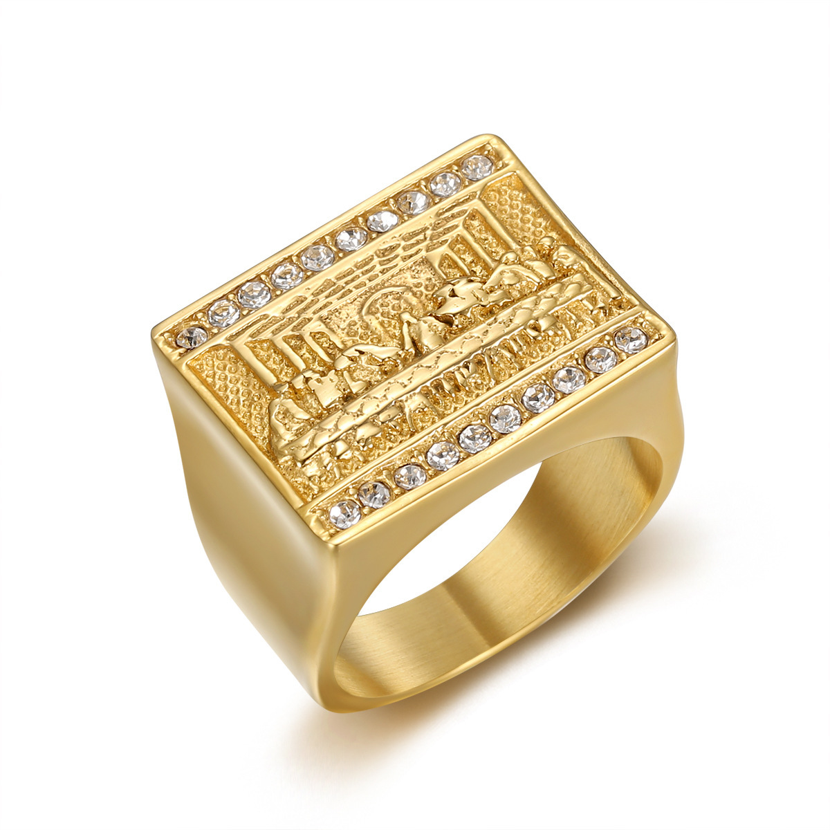 European and American Cross-Border New Hip-Hop Hiphop Titanium Steel Gold-Plated World Famous Paintings Jewish Thirteen Apostles Men's Ring