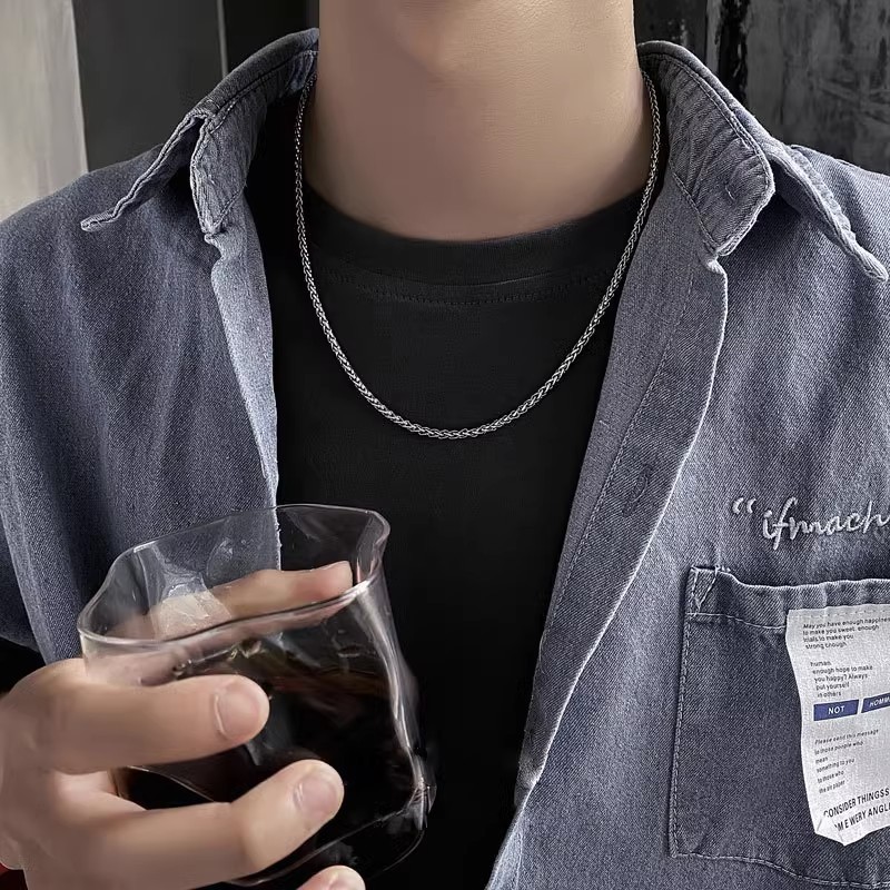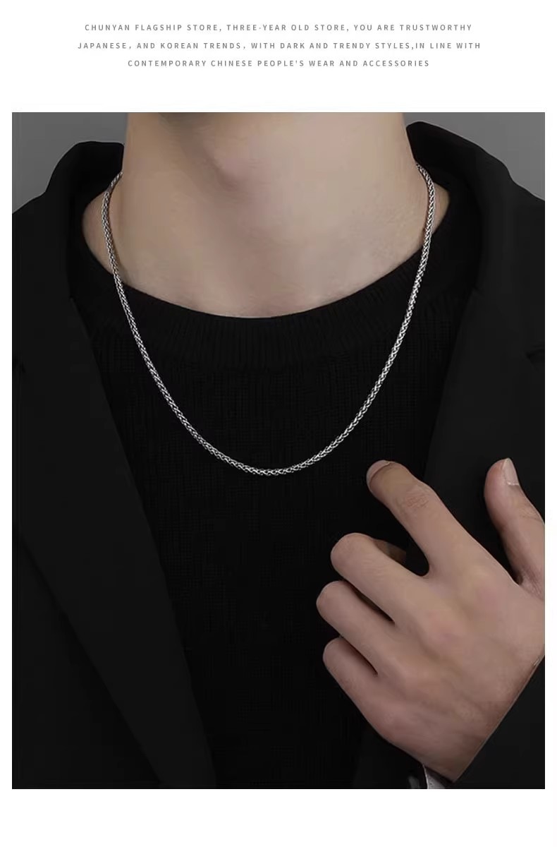 Plain chain necklace men's fashionable hip hop niche design simple thin men's titanium steel clavicle chain boys dragon bone chain