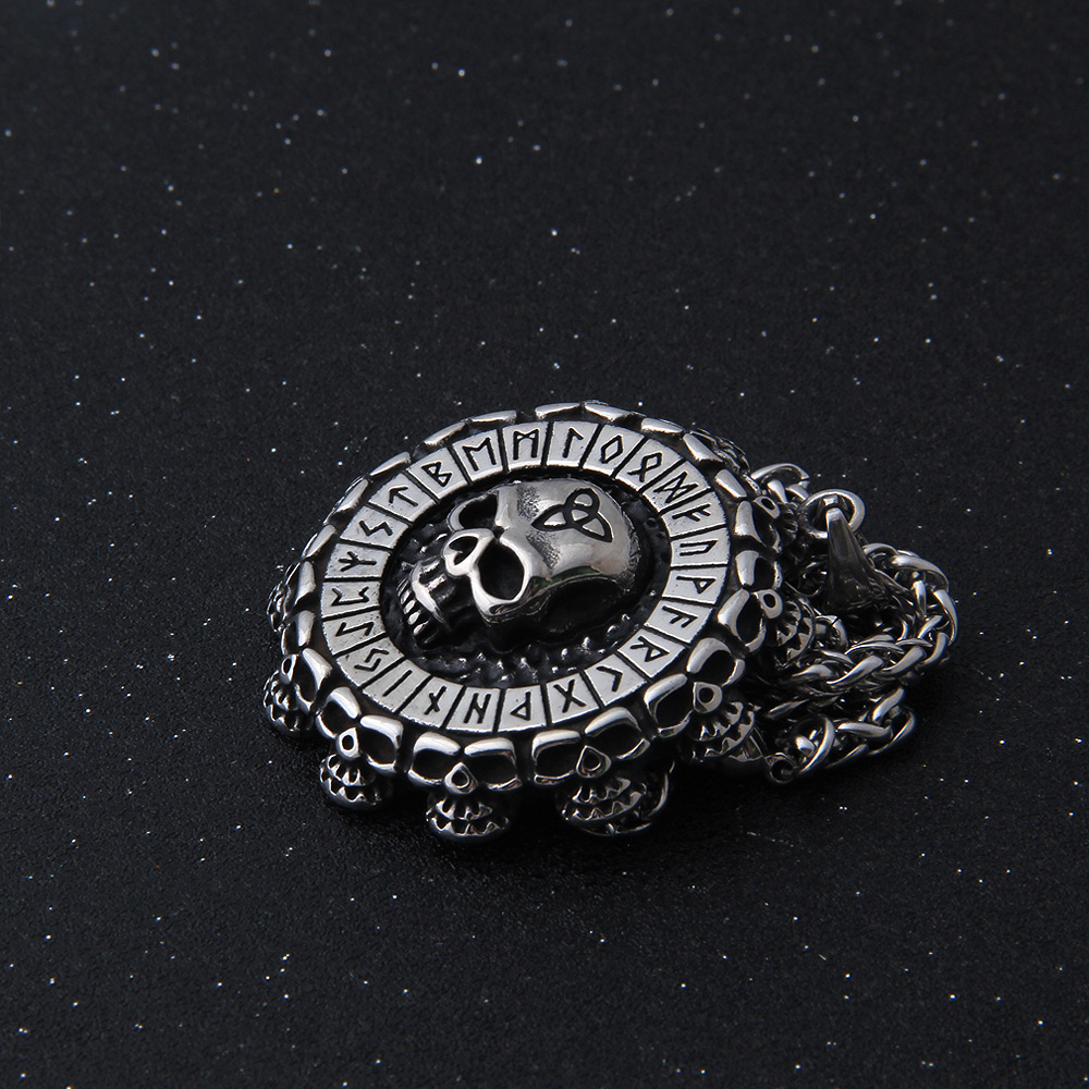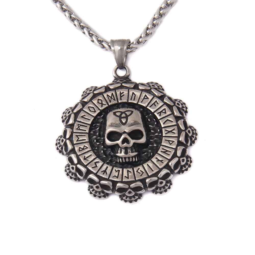 European and American retro personalized round skull titanium steel pendant necklace men's niche design creative jewelry
