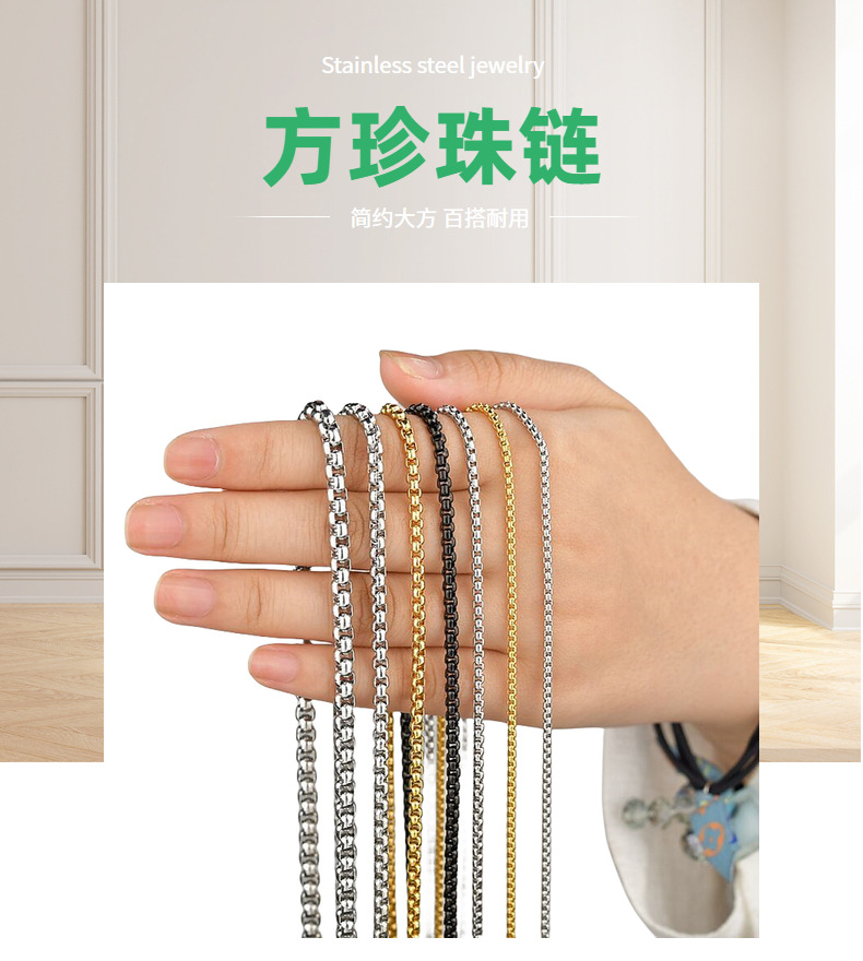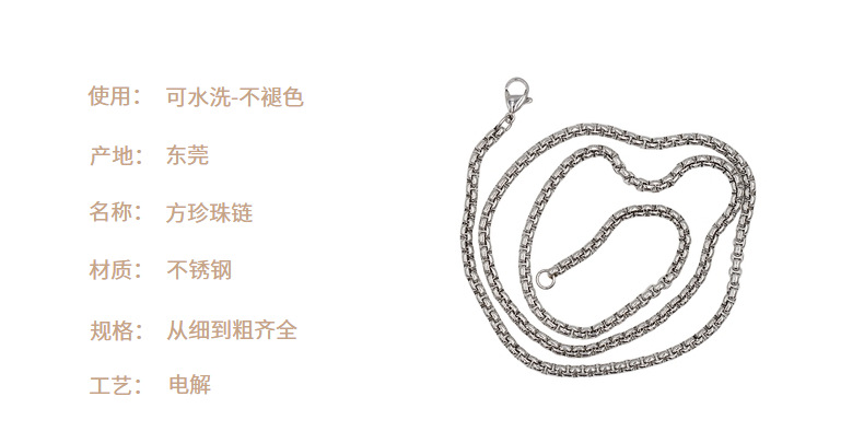 Stainless steel 3.0 square pearl chain 60cm men's necklace hip hop Jewelry pendant chain military tag basic chain