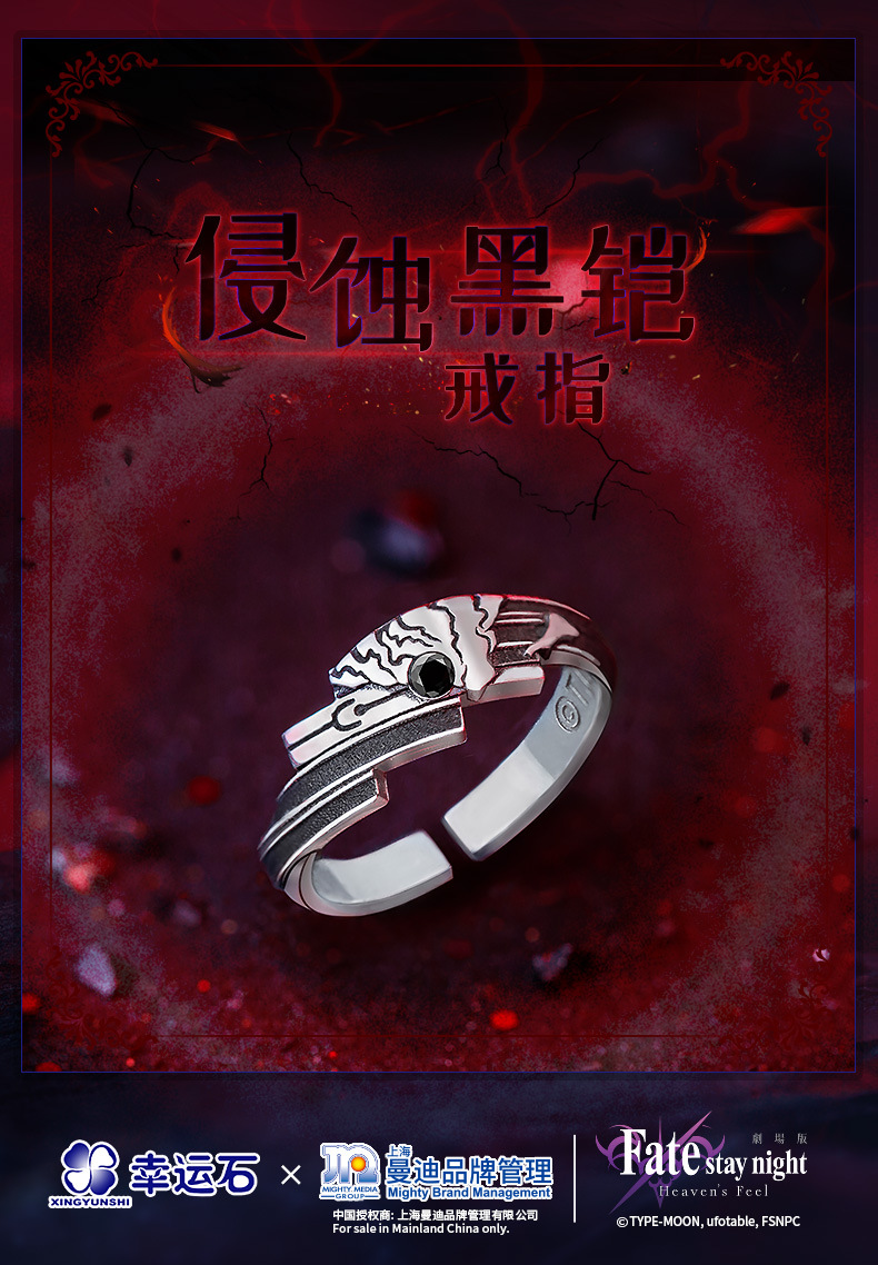 Fate genuine authorized erosion black silk ring 925 silver two-dimensional anime peripheral jewelry
