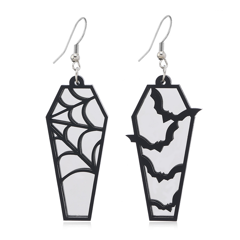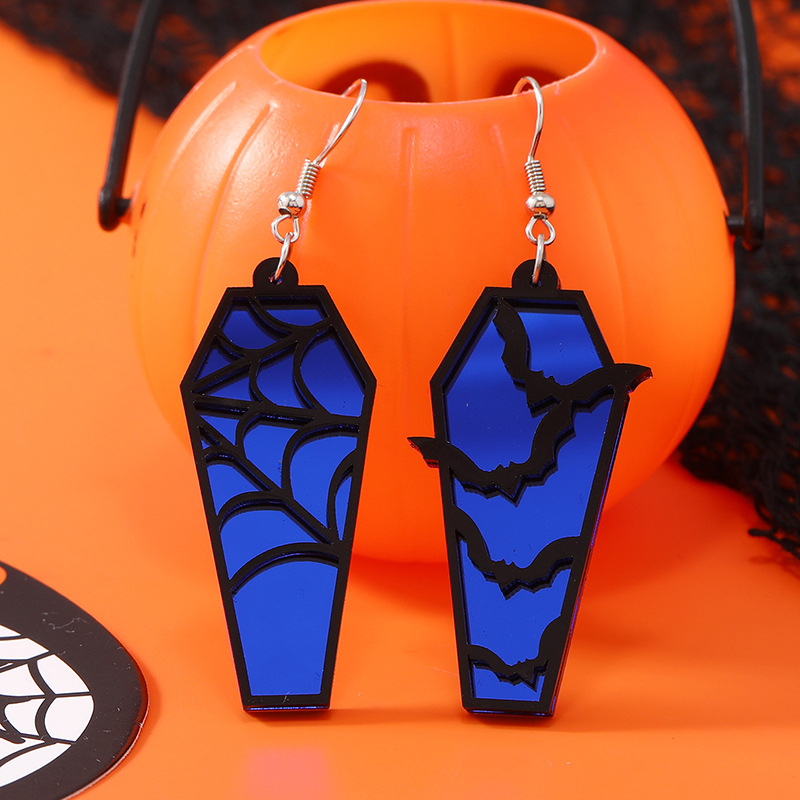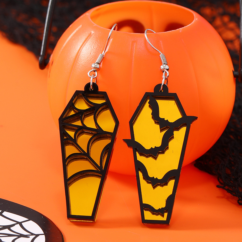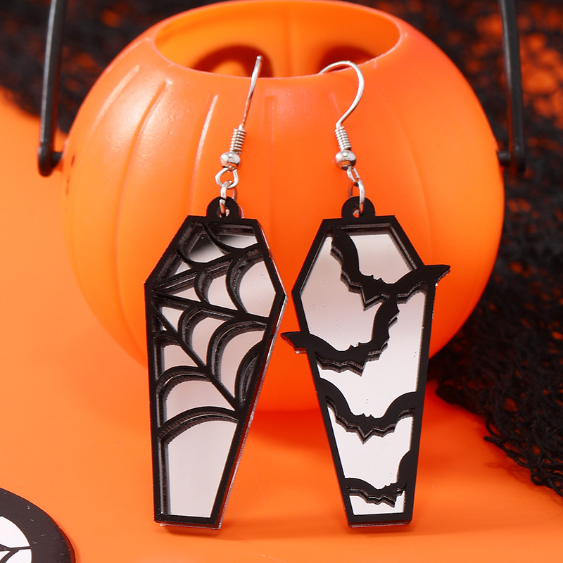 Halloween creative retro acrylic ear spider web wooden coffin ear empty ring personality material bat stud earrings