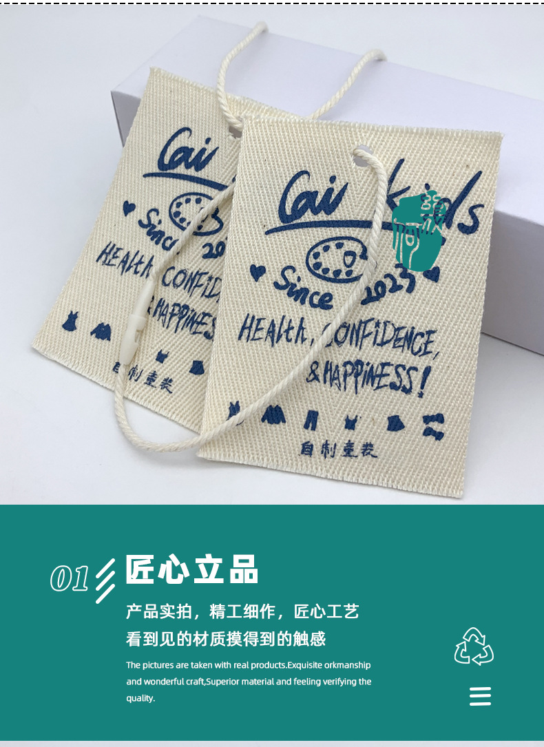 Customized Cotton and Linen Canvas Hang Tags, Original Cotton Children's Clothing Hang Tags, Cotton Screen-Printed Artistic Clothing Labels