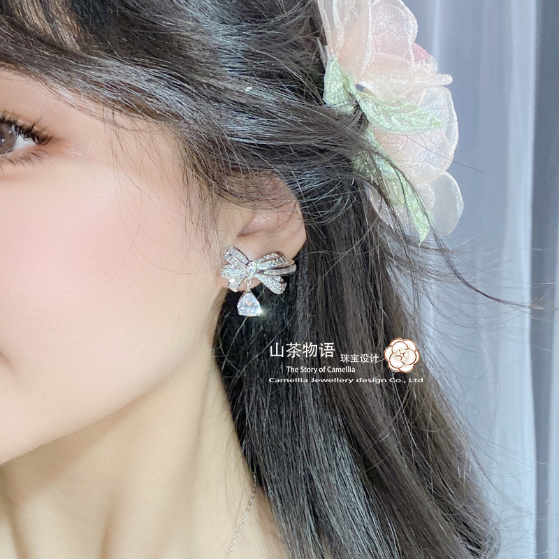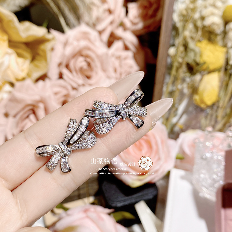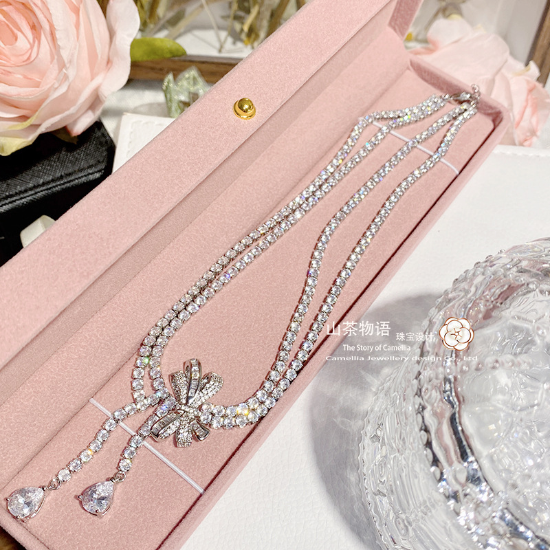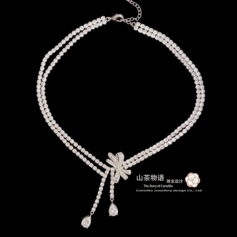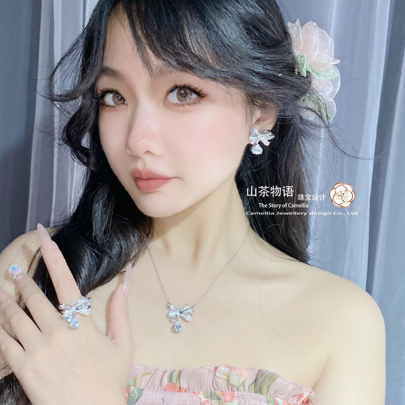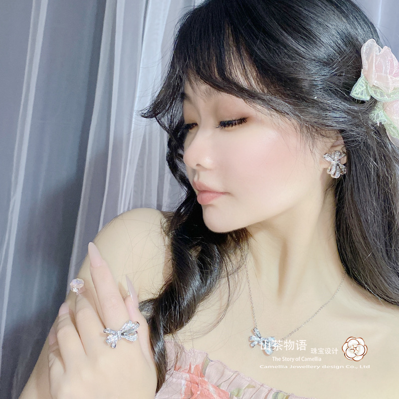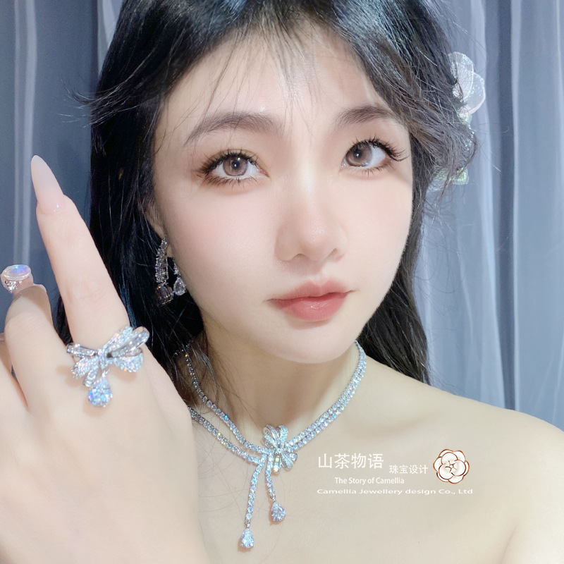 Camellia European and American fashion bow girl suit light luxury full diamond banquet occasion all-match earrings necklace