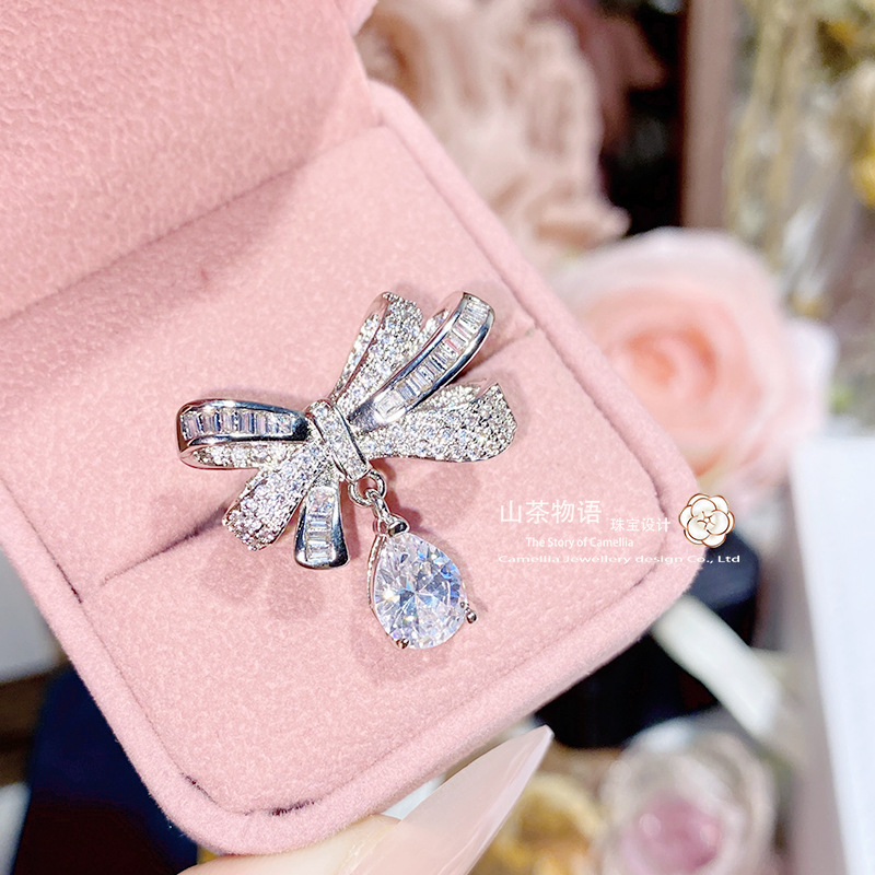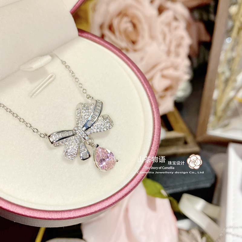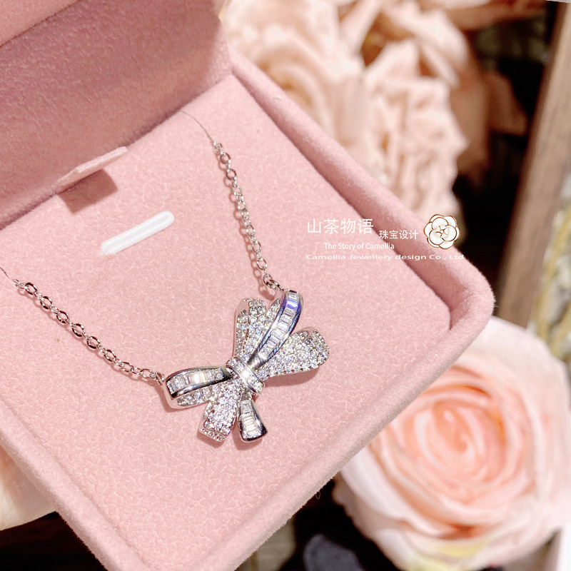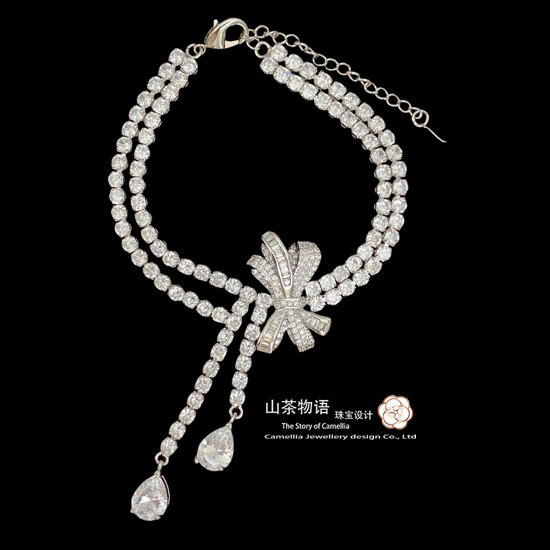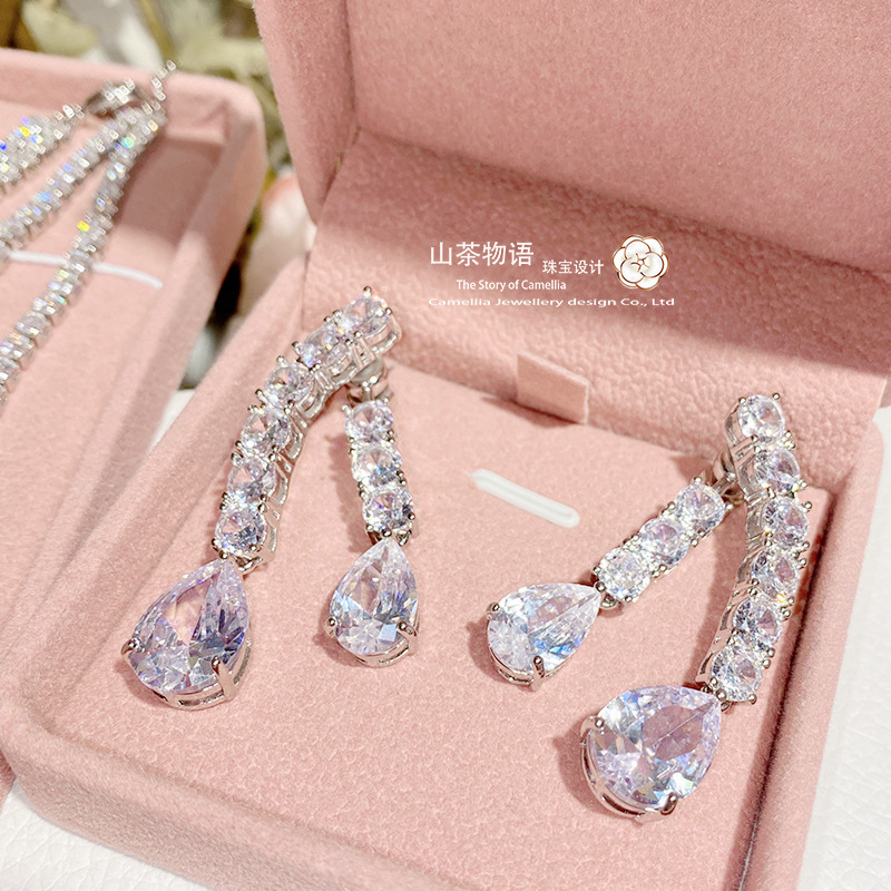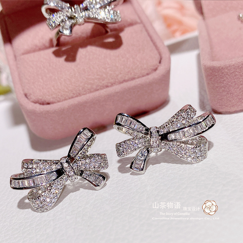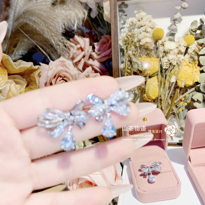 Camellia European and American fashion bow girl suit light luxury full diamond banquet occasion all-match earrings necklace