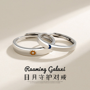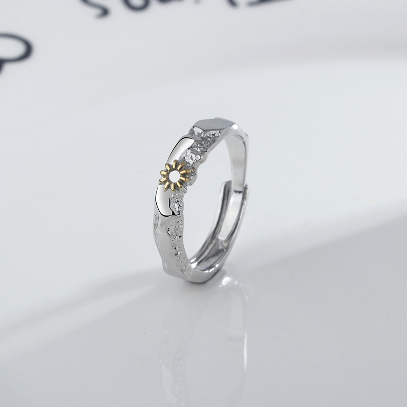 Runxin Sun Moon Tonghui couple ring a pair of fashionable light luxury gold open ring Sun Moon men and women ring