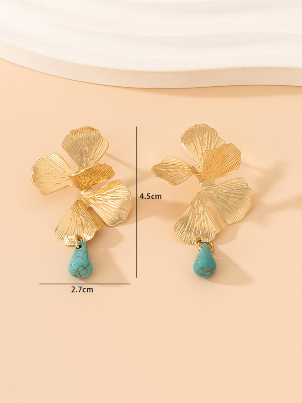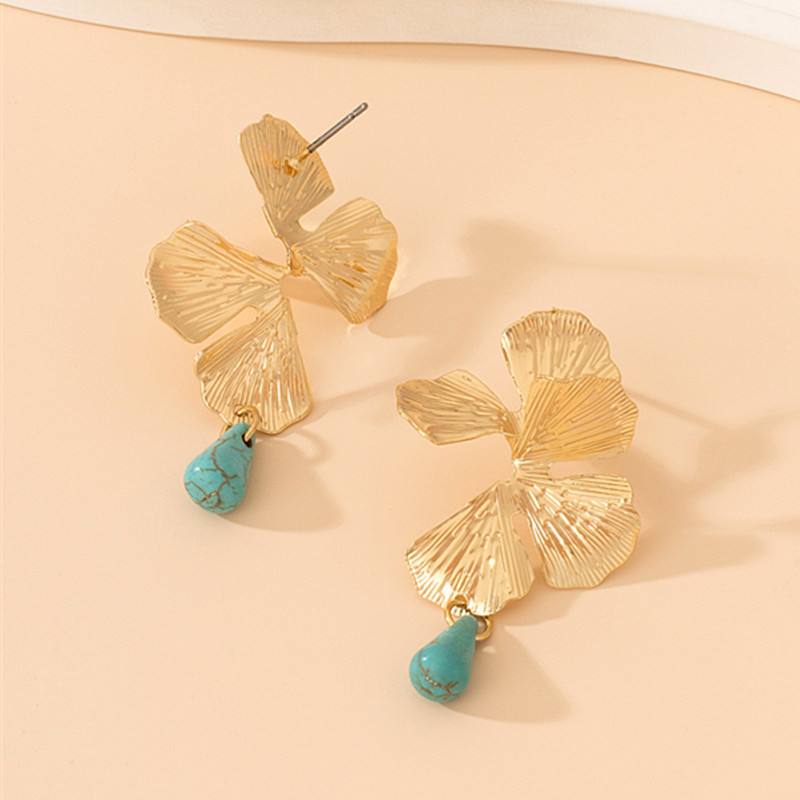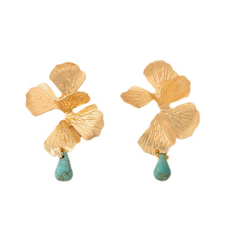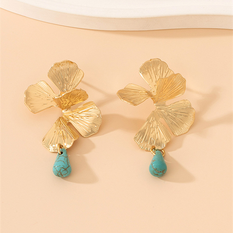 Turquoise flower earrings European and American elegant original new retro style cross-border earrings metal texture Qingdao earrings