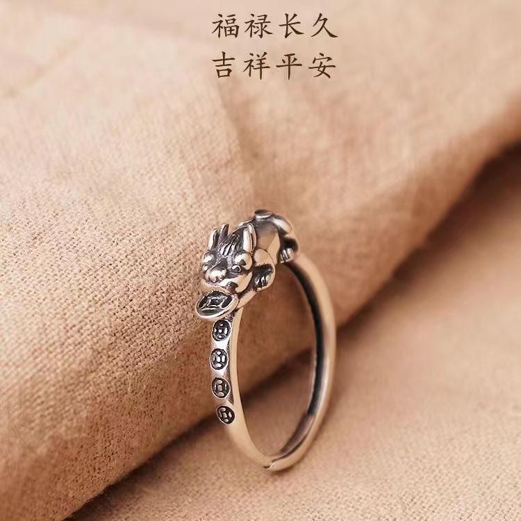 New Unisex Gourd Fashion Hand Jewelry Retro Thai Silver Ring Pixiu Ingot Ruyi Open Ring Wholesale