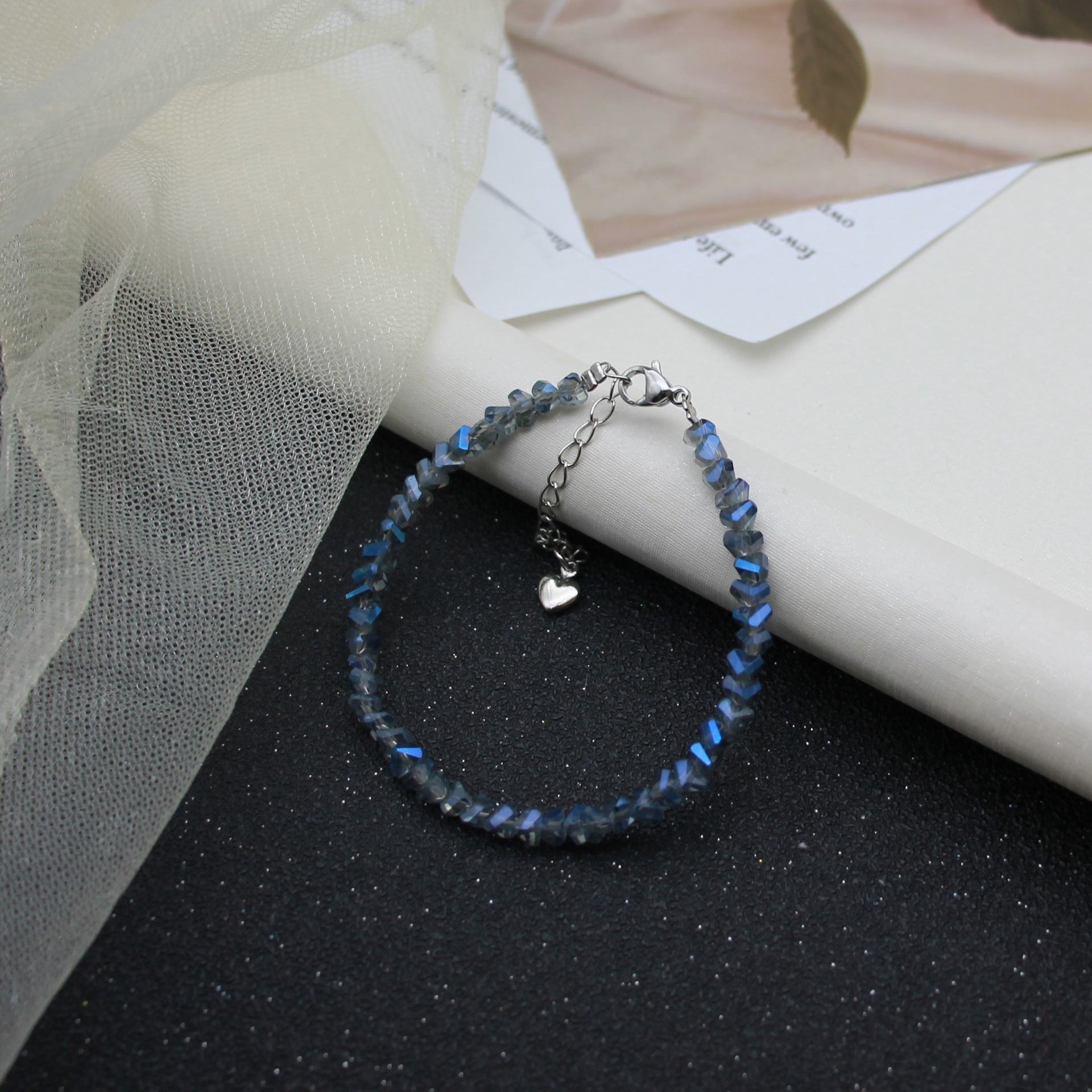 Color: Sparkling electroplated blue crystal bracelet 15+5cm
