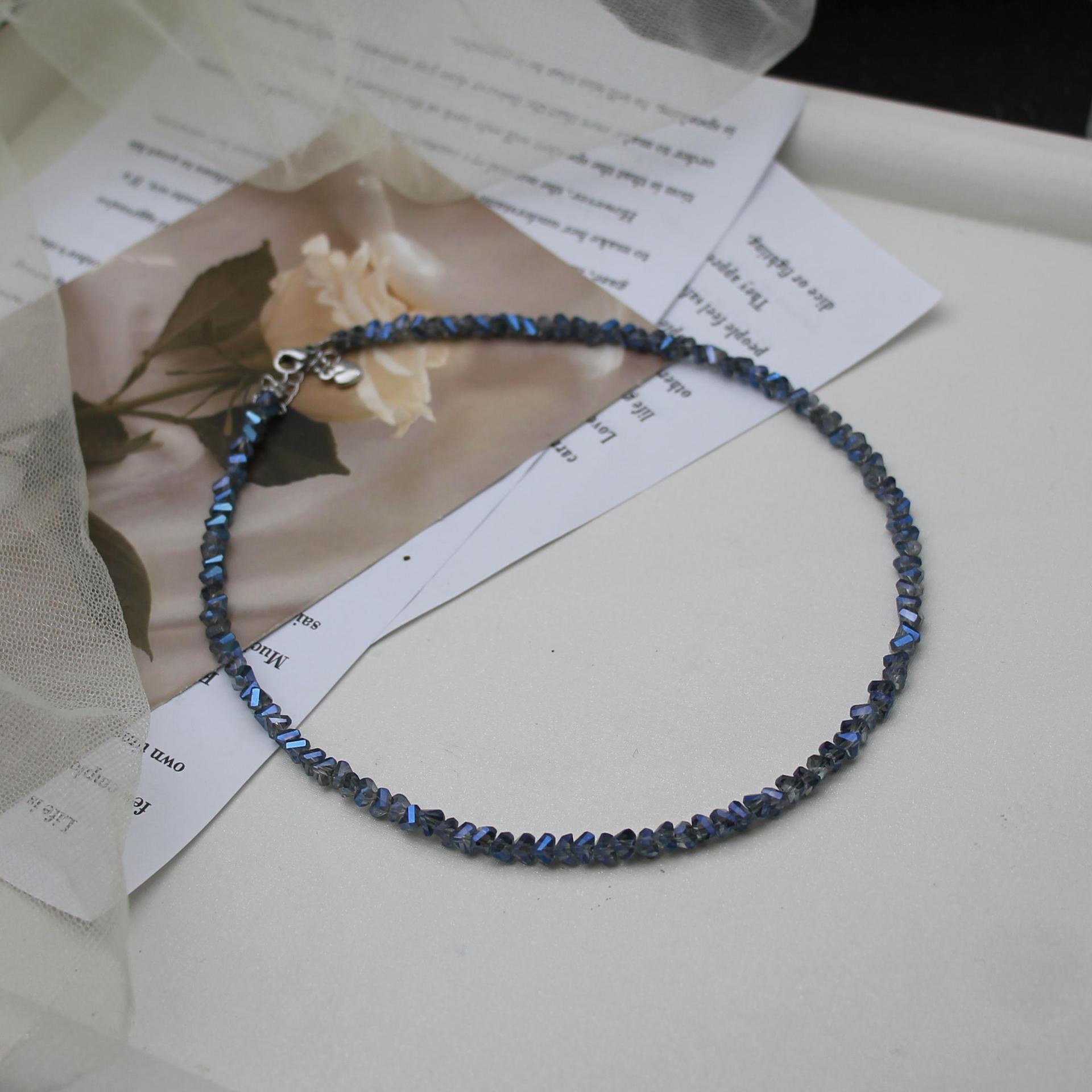 Color: Sparkling electroplated blue crystal necklace 36+5cm