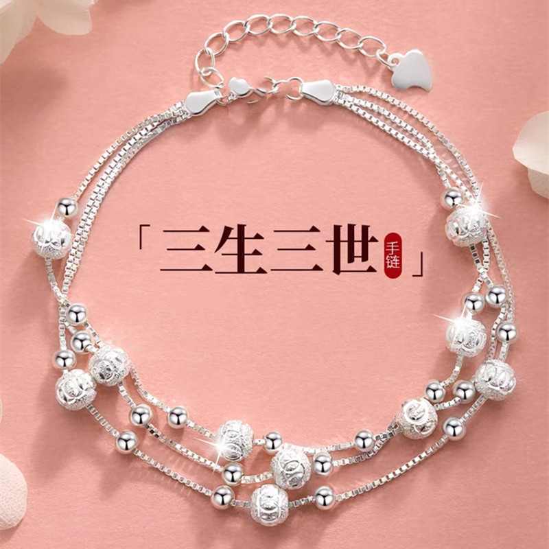 Sansheng Sanshi bracelet female light luxury niche design multi-layer lucky beads bracelet Valentine's Day birthday gift for girlfriend