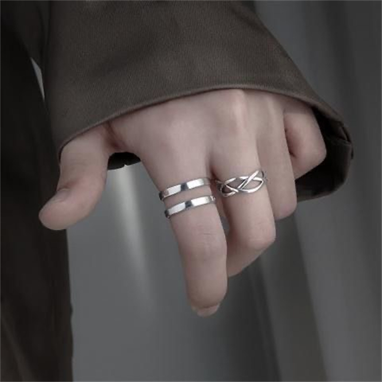 Ring Men's Trendy Adjustable Index Finger Single Ring Student Women's Ins No Falling Niche Jewelry Men's and Boys's Ring